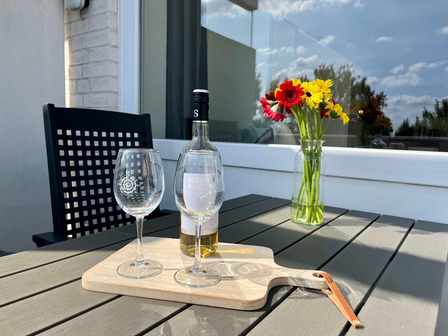 Stilvolle Ferienwohnung in Grömitz mit Panorama-Meerblick, Balkon und Strandkorb für entspannte Urlaubstage.