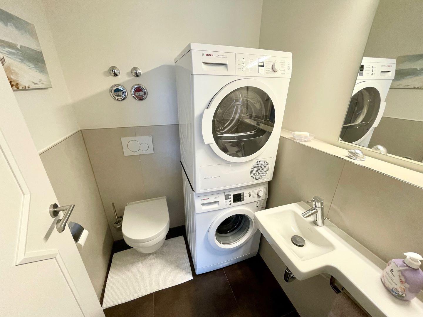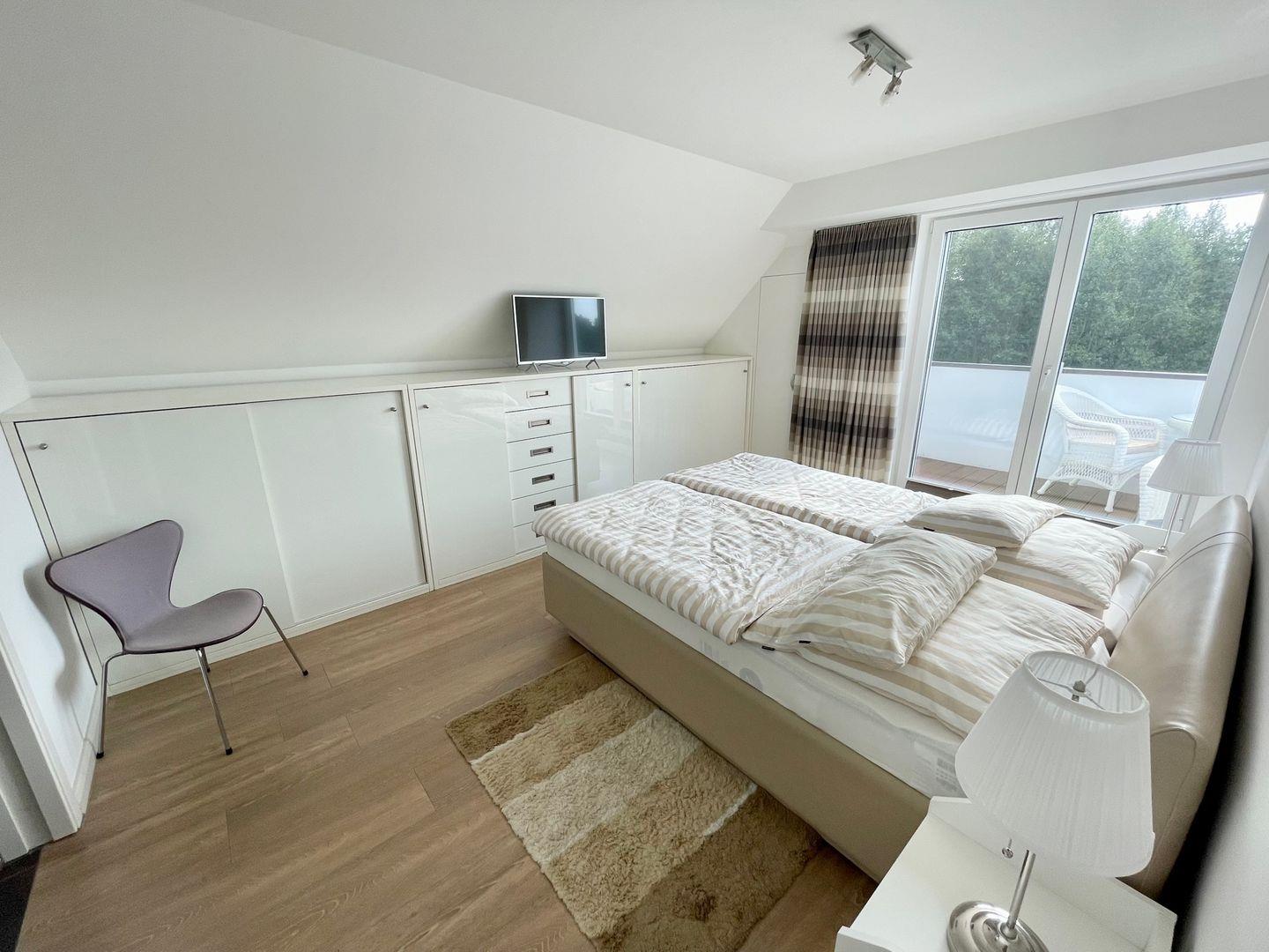 Die äußerst hochwertige Ausstattung und die stilvolle Einrichtung dieser Wohnung bietet zeitgemäßen Luxus auf 92 qm Wohnfläche. 2-4 Personen finden hier ein tolles Urlaubsdomizil. Mittelpunkt der Wohnung bildet der großzügige Wohnbereich, der mit einem Ecksofa und einem Relaxsessel mit Fußhocker ausgestattet ist und einen wunderschönem Blick auf den Golfplatz frei gibt. Der Balkon vom Wohn-/Esszimmerzimmer zeigt zur Westseite. Hier genießen Sie schon mittags die Sonne bis zum Sonnenuntergang am Abend. Der Essbereich mit der offenen, komplett ausgestatteten Komfortküche mit Dampfgarer und Mikrowelle bietet ausreichend Platz. Die Schlafzimmer verfügen über ein Doppelbett (2 x 80x200 cm) und ein Doppelbett (2 x 90x200 cm), einem großen Kleiderschrank mit ausreichend Stauraum für Ihre Urlaubsgarderobe und einem Balkon in Ostausrichtung - ausgestattet mit Gartenmöbeln- um mit der Morgensonne schon den ersten Kaffee dort zu genießen. Der nach Osten ausgerichtete Balkon ist von beiden Schlafzimmern aus begehbar. Sowohl vom West- wie auch vom Ostbalkon haben Sie einen spektakulären Blick in die Natur und auf den Golfplatz. Das Tageslicht-Bad ist hochwertig und modern und verfügt über eine ebenerdige bodentiefe Walk-In-Raindance-Dusche. Das Gäste-WC ist zusätzlich mit einer Waschmaschine und mit einem Trockner versehen. Kostenloser Internetzugang ist über WLAN gegeben. Ein wunderbares Highlight der Golfresidenz ist das große Schwimmbad (8x12 m) im Nachbarhaus, welches die Gäste der Anlage ganzjährig kostenfrei nutzen können. Entspannung ist ebenfalls in der Sauna gegeben (Münzbetrieb). Genießen Sie die Ruhe und Erholung, die Sie hier finden werden. Auf dem Grundstück sind zwei PKW Stellplätze für Sie reserviert. Ein Fahrstuhl ist selbstverständlich vorhanden um barrierefrei in diese tolle Dachgeschosswohnung zu gelangen. Fahrradständer sind vor dem Haus und mit dem Zweirad ist man bequem in 3 Minuten auch am Strand. Ein Bollerwagen steht Ihnen ebenfalls zur Verfügung. Ihren Hund dürfen Sie hier gerne mitbringen.