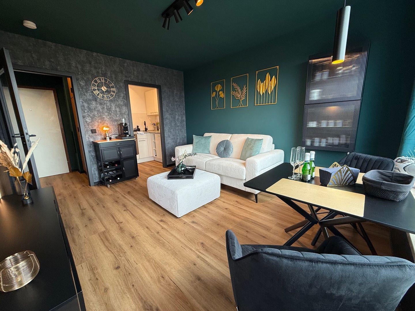 Vom Bad über Fußboden und Mobiliar wurde alles erneuert und modern eingerichtet. Lassen Sie sich von einem ganz besonderen Farbkonzept überraschen.