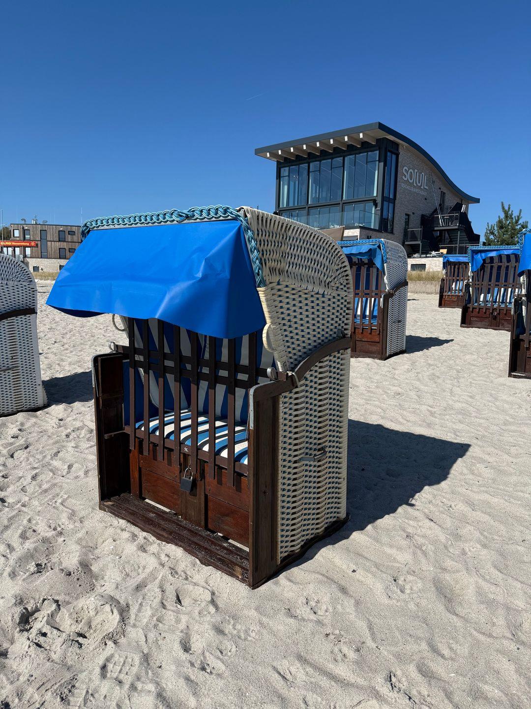 Bei dieser Wohnung besteht die Möglichkeit einen Strandkorb in 1. Reihe direkt im Dünenpark, Abschnitt Soul optional dazu zu buchen: