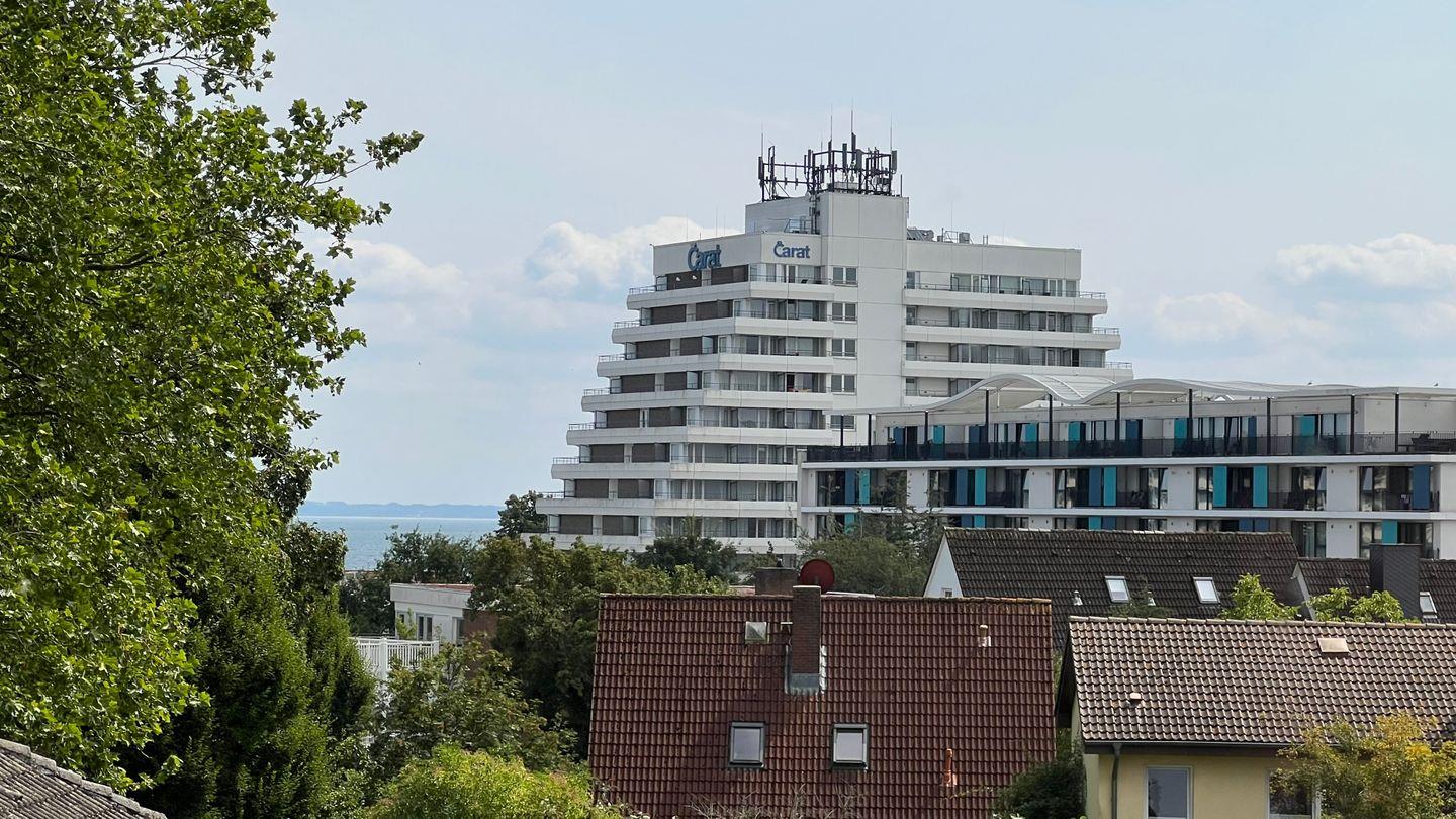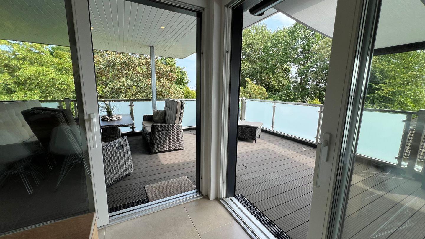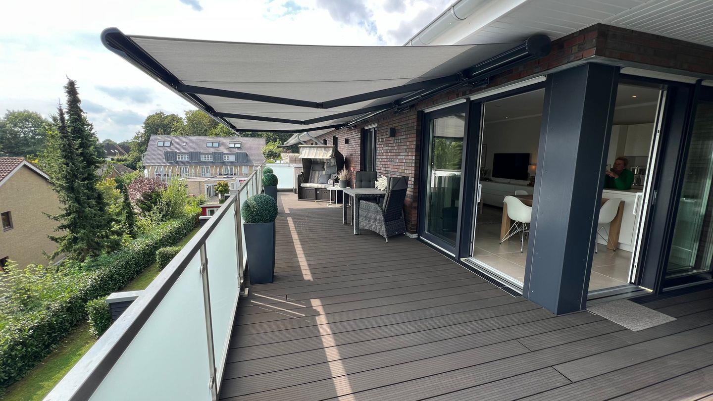 Perfekte Erholung in ruhiger Lage mit absoluter Privatsphäre im top ausgestatteten Penthouse mit traumhaftem Blick auf die Baumkronen des Grömitzer Kurparks zur einen Seite der 52qm großen Dachterrasse und zur anderen Seite auf das Hotel Carat und die Ostsee.