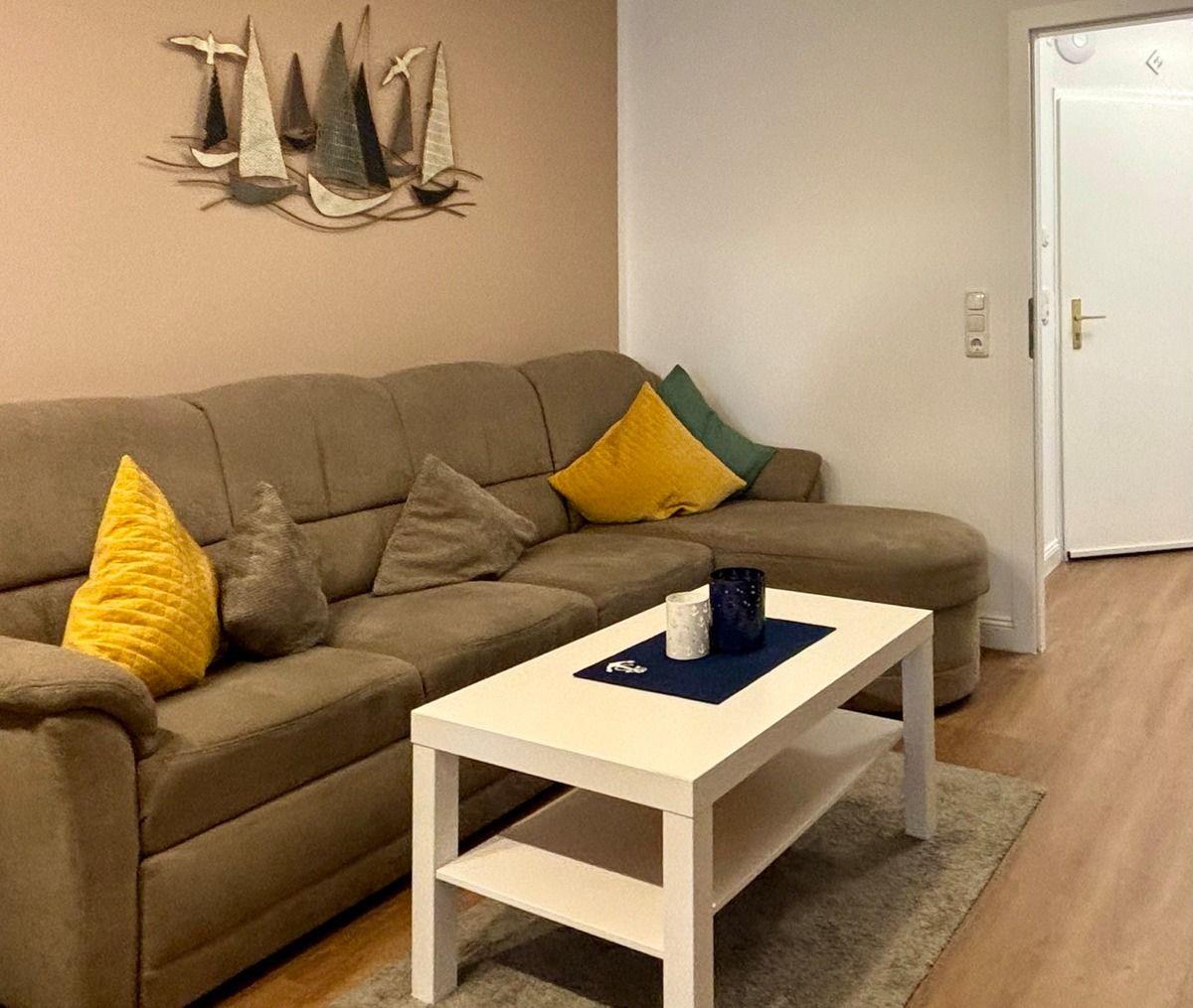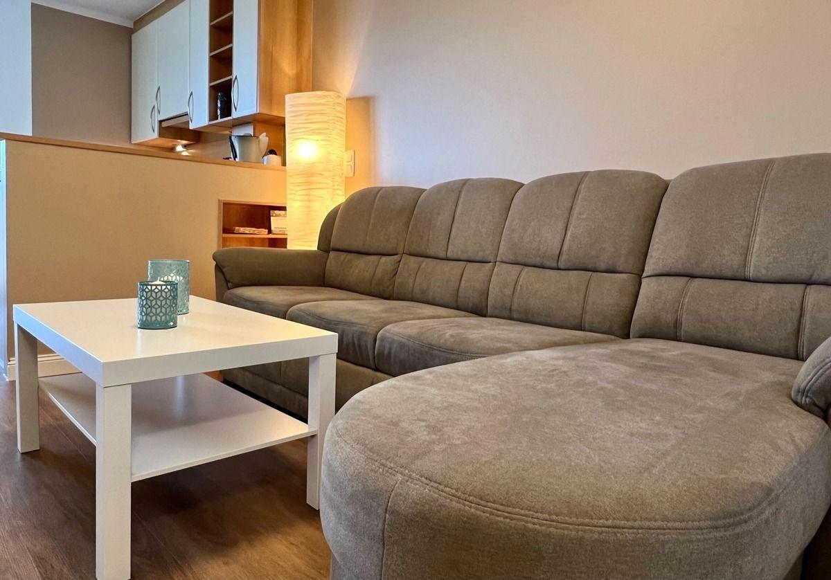 Der gemütliche Wohn- und Essbereich bildet das Herzstück der Ferienwohnung. Hier lässt sich´s abends einen gemütlichen Fernsehabend (Smart TV) auf dem Sofa verbringen und wenn Sie zu Fünft anreisen, lässt sich das Sofa ganz einfach zum Bett umfunktionieren (140cm x 180 cm).