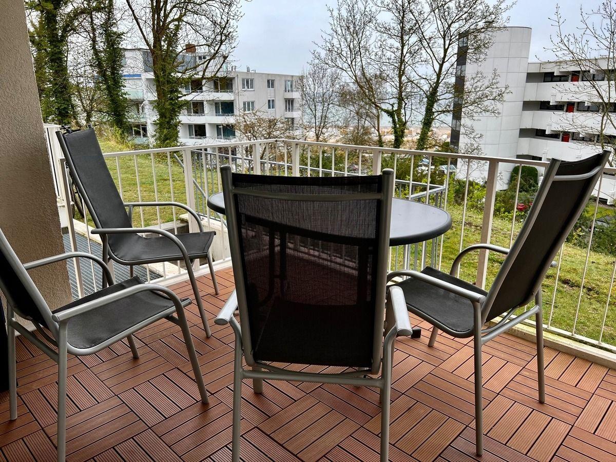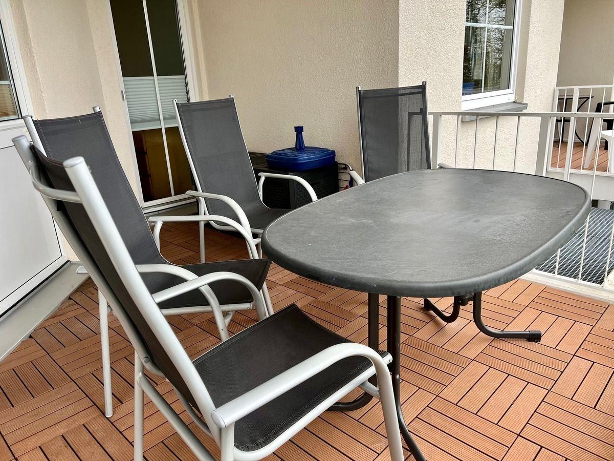 Vom Essbereich führt ein Zugang zum Balkon. Dieser ist möbliert und überdacht und bietet somit Schutz vor Sonne, Wind und Regen. Um mit Ihren Lieben in Verbindung zu bleiben können Sie den kostenfreien WLAN Zugang nutzen.