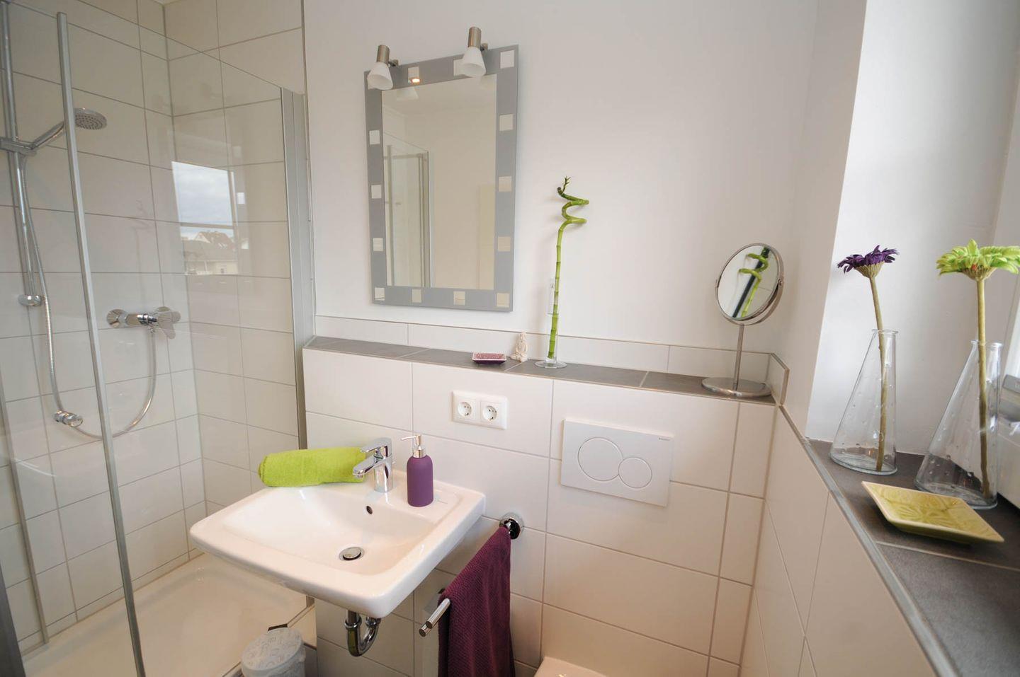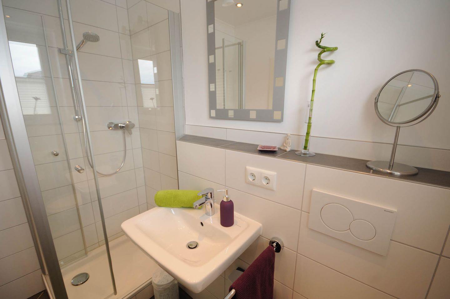 Vom Wohnzimmer aus haben Sie Zugang zu einem großzügigen, möblierten Balkon, auf dem Sie die frische Luft und das Urlaubsfeeling in vollen Zügen genießen können. Ein modernes Duschbad mit WC und Handtuchheizung rundet das Wohlfühlambiente ab.