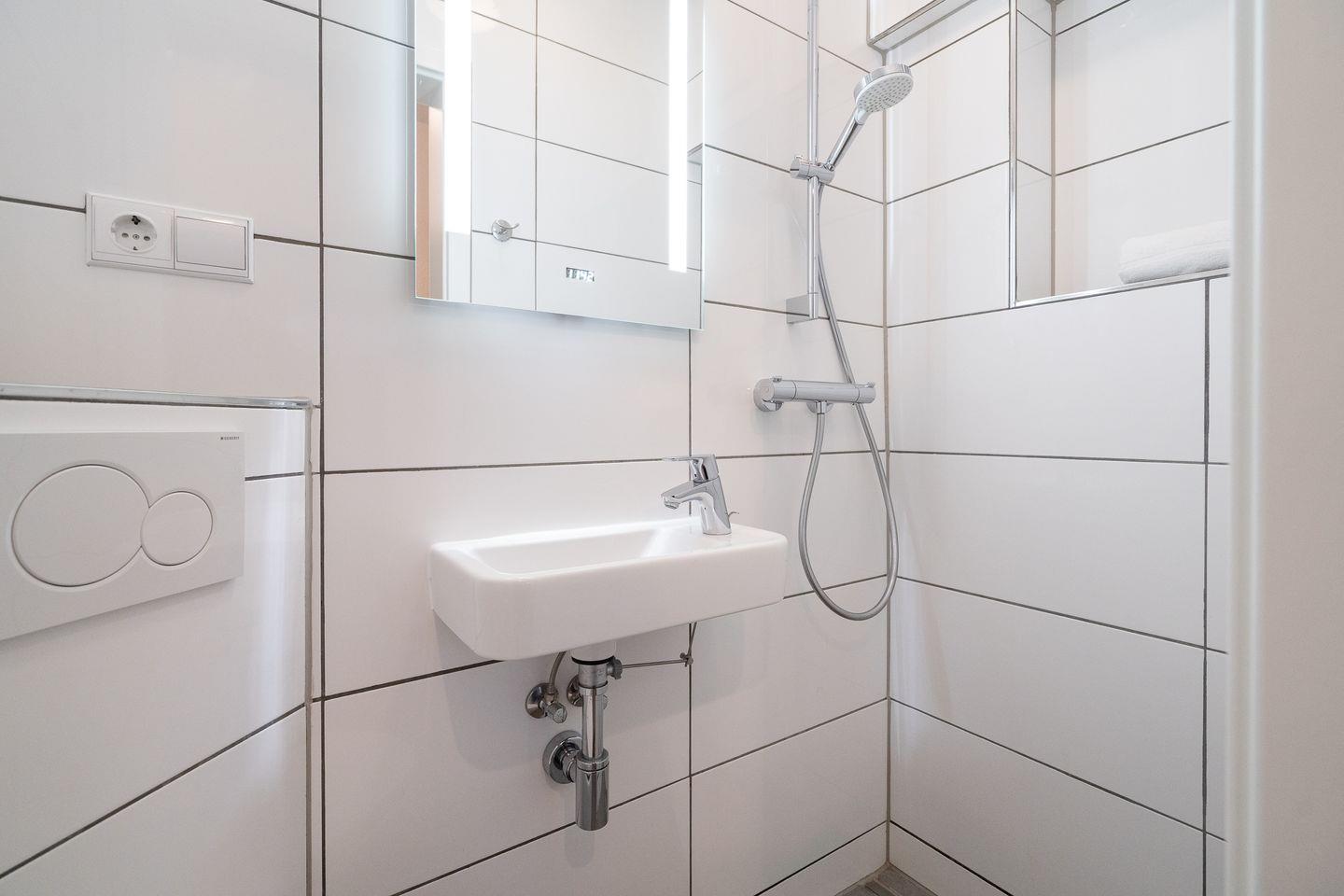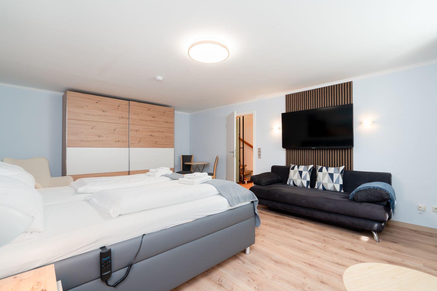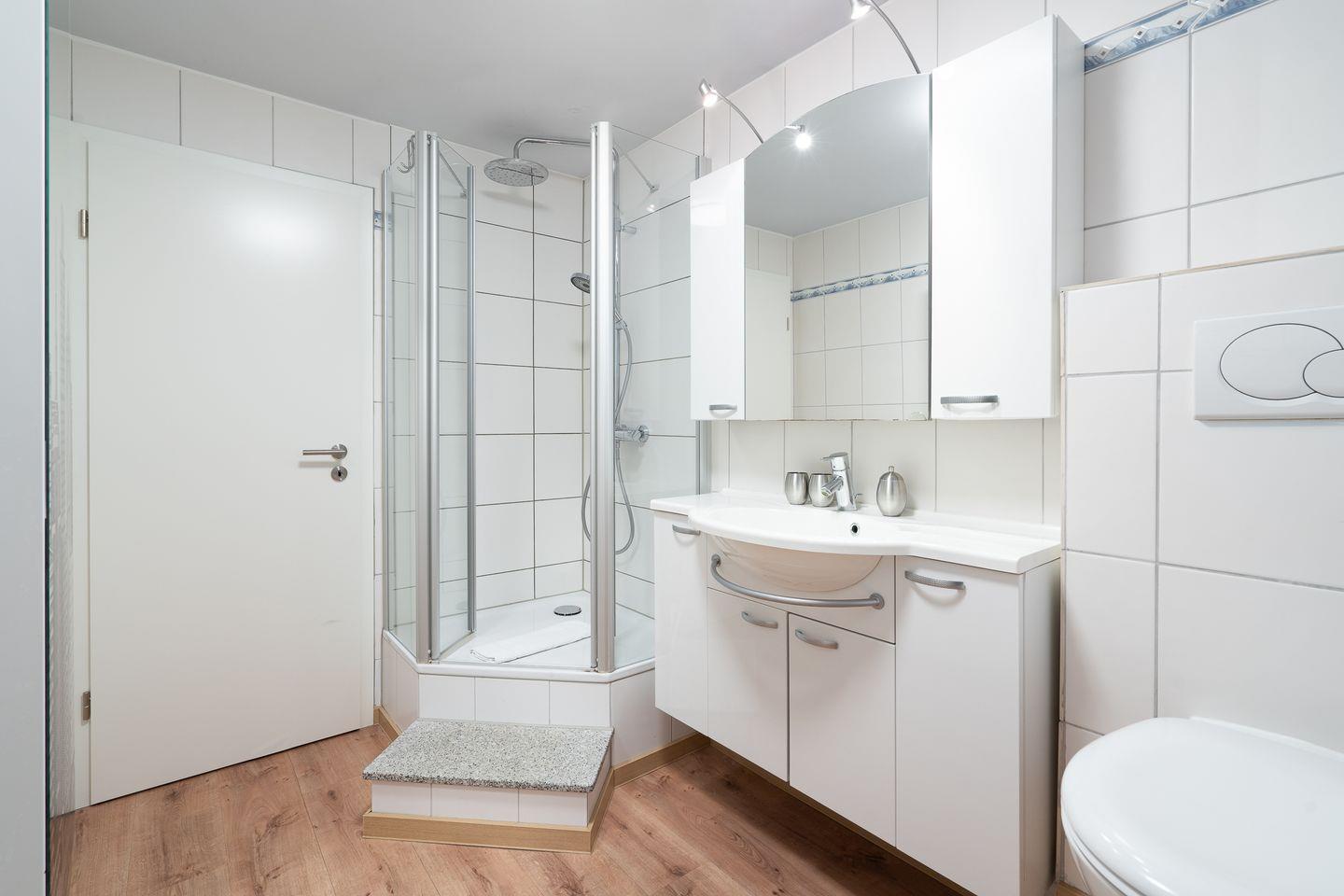 Im Tiefparterre befindet sich das zweite Schlafzimmer mit einem bequemen Doppelbett, einem Kleiderschrank, einem zusätzlichen Schlafsofa und einem Flachbild-Fernseher. Ein weiteres kleines Duschbad steht Ihnen hier ebenfalls zur Verfügung.