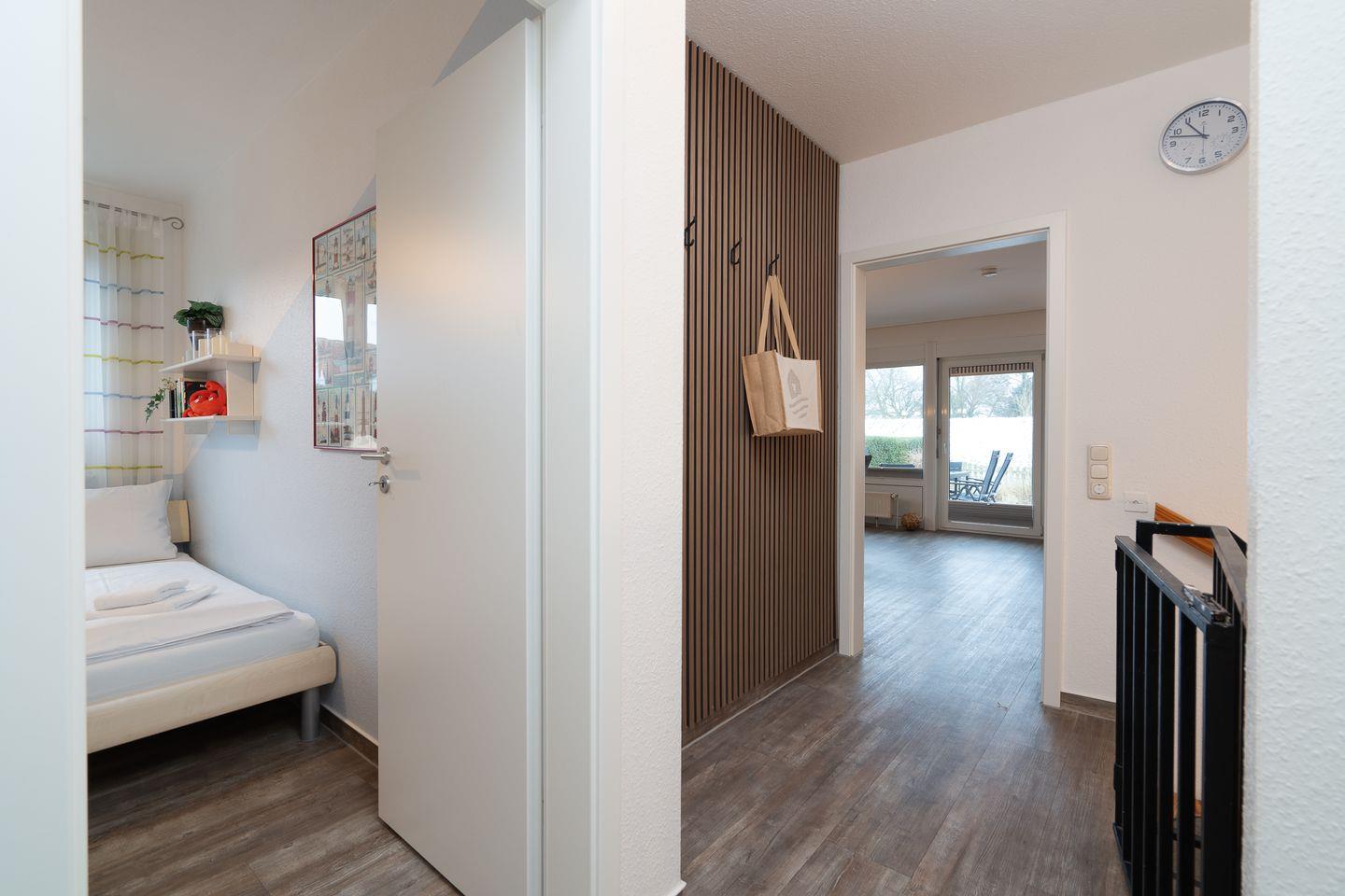 Das 85 m² große Maisonette-Apartment befindet sich im Erdgeschoss und im Tiefparterre der Deich-Residenz. Es ist für eine Belegung mit 4 Erwachsenen und 2 Kindern ausgelegt, und auch Ihr Hund ist herzlich willkommen! Ihr Auto können Sie auf dem wohnungseigenen Stellplatz parken.