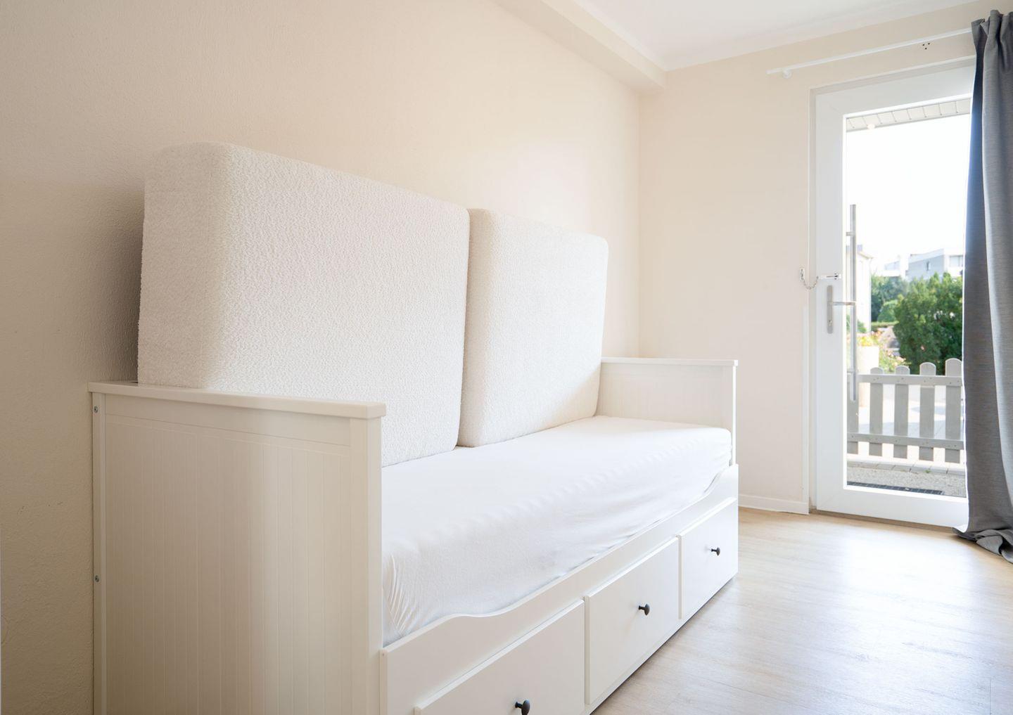 Nur wenige Gehminuten vom Strand entfernt befindet sich diese schöne 35 m² große Ferienwohnung im Erdgeschoss, die Platz für 2 Personen bietet – und auch Ihr Hund ist herzlich willkommen. Die Wohnung verfügt über einen hellen Wohnbereich mit einem Sofa-Schrankbett. Das Badezimmer ist mit einer Dusche ausgestattet. Ergänzt wird das Angebot durch eine kleine Küchenzeile mit einem Essplatz sowie eine möblierte Terrasse, auf der Sie den Tag genießen können.