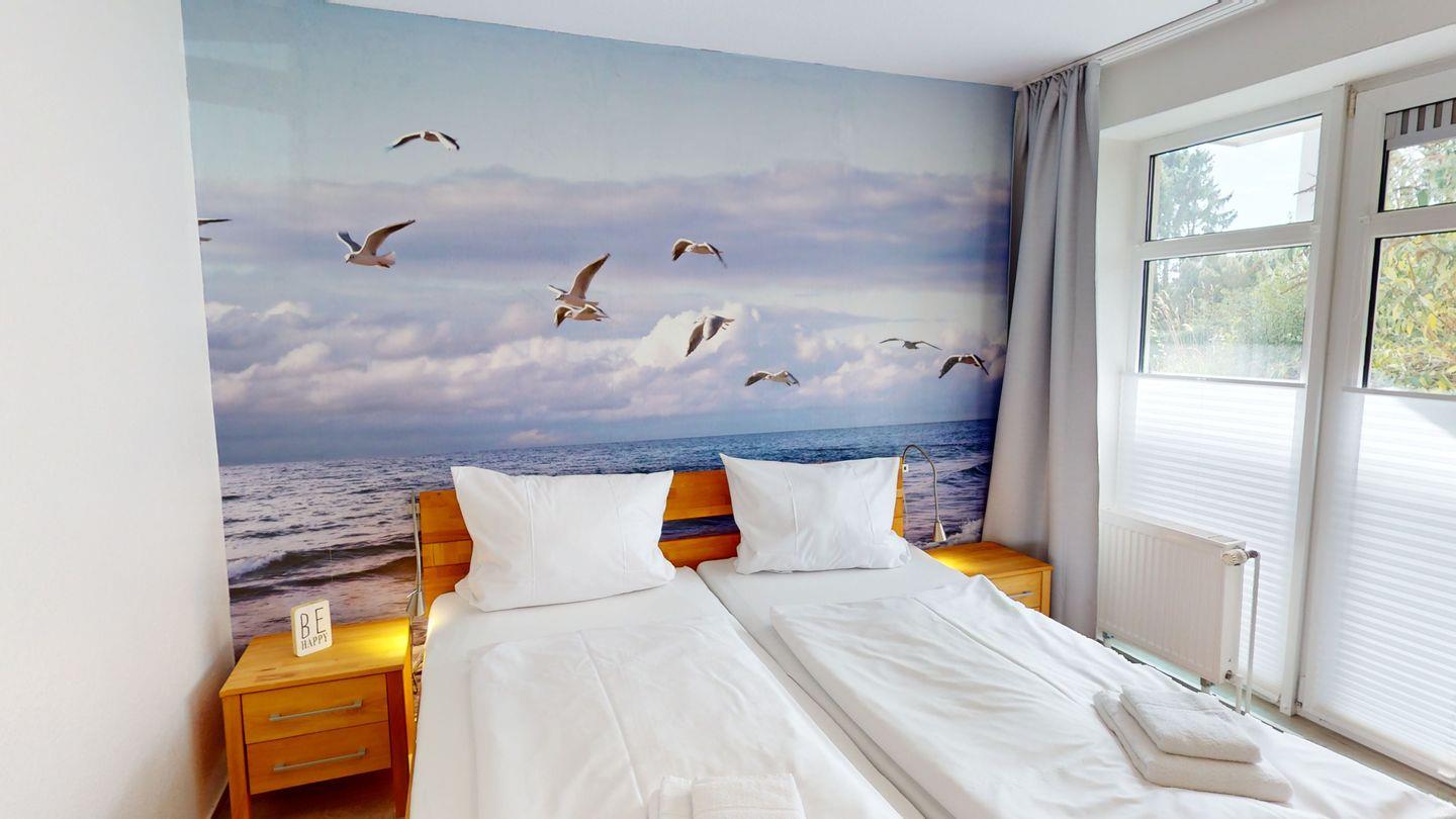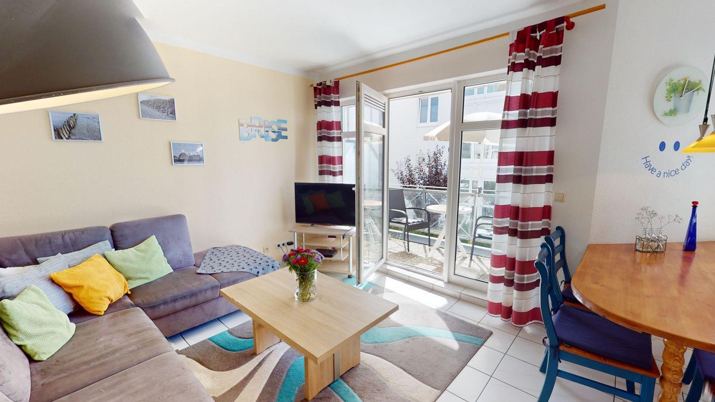 Die helle Wohnung bietet einen Wohn- /Essbereich mit offener Küchenzeile, einen möblierten Balkon, ein Gäste- WC und ein modernes Badezimmer mit Dusche. Eins der Schlafzimmer verfügt über ein Doppelbett, das andere über zwei Einzelbetten - in beiden Schlafzimmern wurde ein neuer Design-Plankenboden verlegt, der für ein modernes, gesundes Raumklima sorgt.