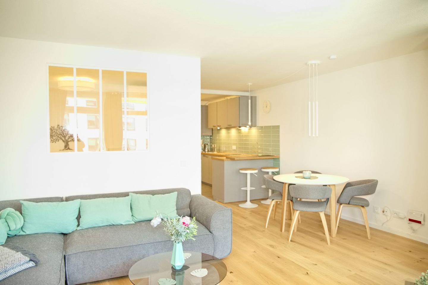 Zusätzlich ist die Wohnung allergikergeeignet und nicht raucherfreundlich. Alle Fenster sind mit Sichtschutz ausgestattet, sodass Sie sich stets privat fühlen können. Für Unterhaltung sorgen WLAN und ein Fernseher im Wohnbereich.