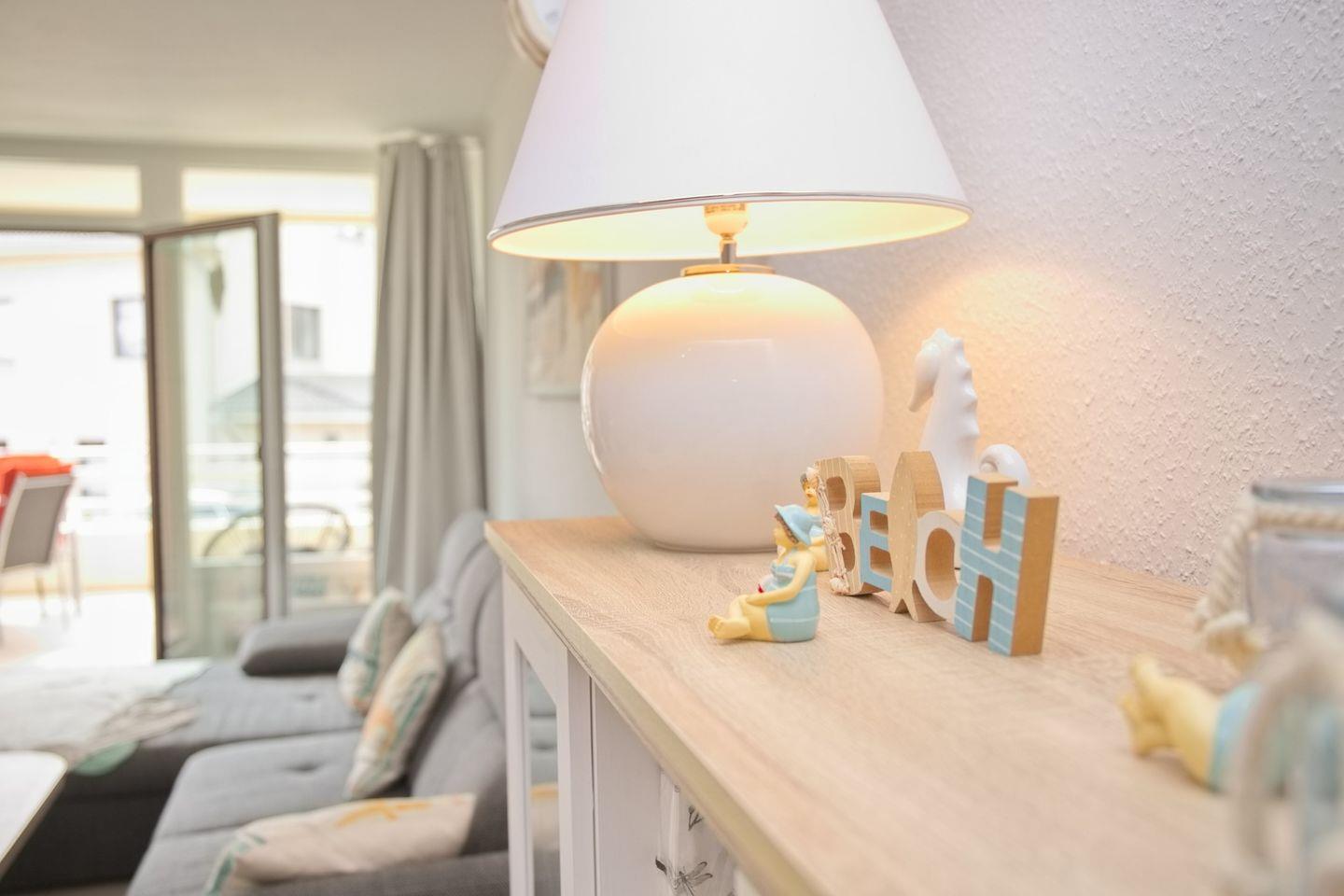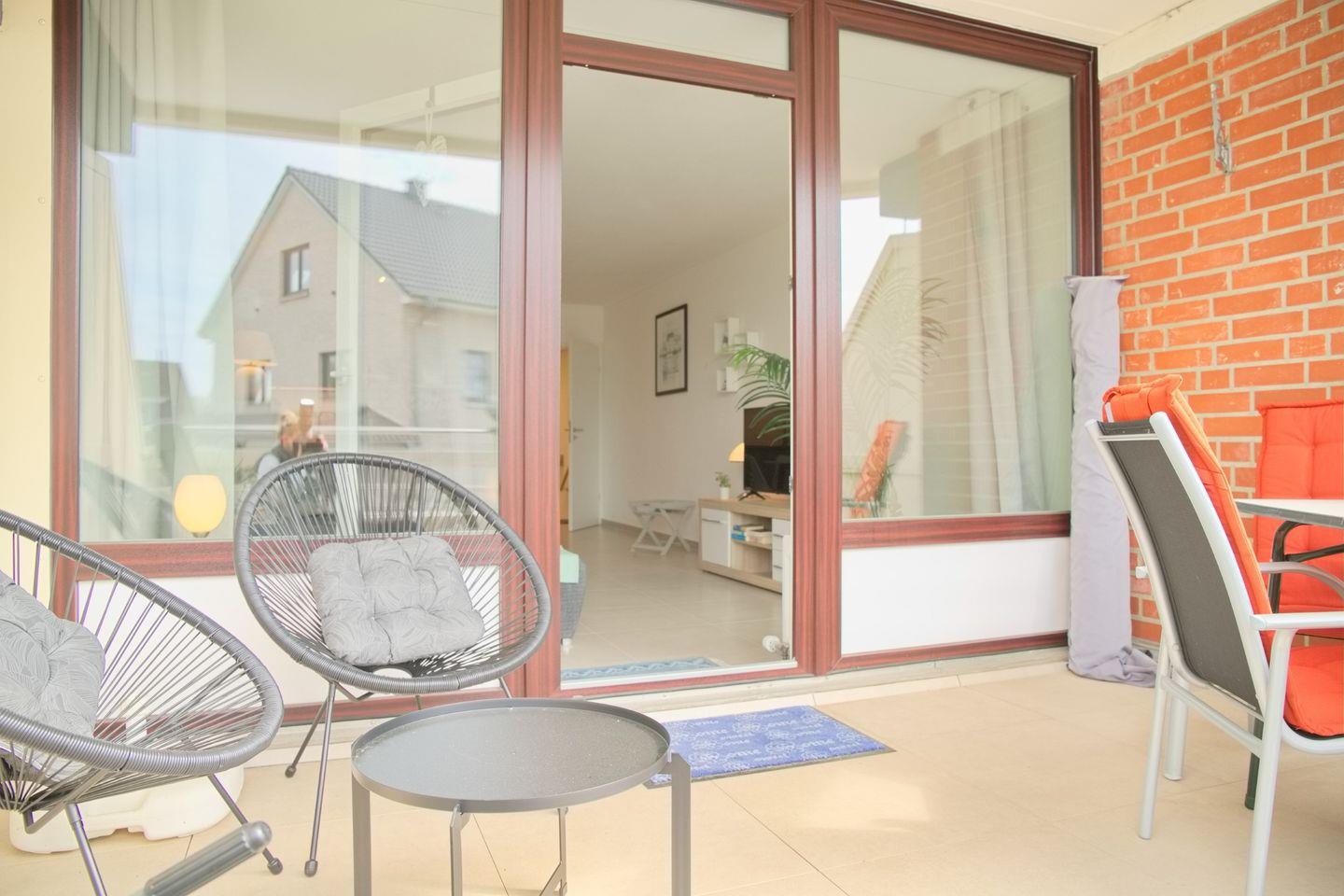 Besonders hervorzuheben ist der überdachte Balkon, von dem aus Sie einen eingeschränkten Blick auf das Meer genießen können. Gartenmöbel laden zu entspannten Stunden im Freien ein. Die Wohnung ist eine Nichtraucherwohnung. Hunde sind willkommen, wobei die Anzahl auf maximal zwei Tiere beschränkt ist.