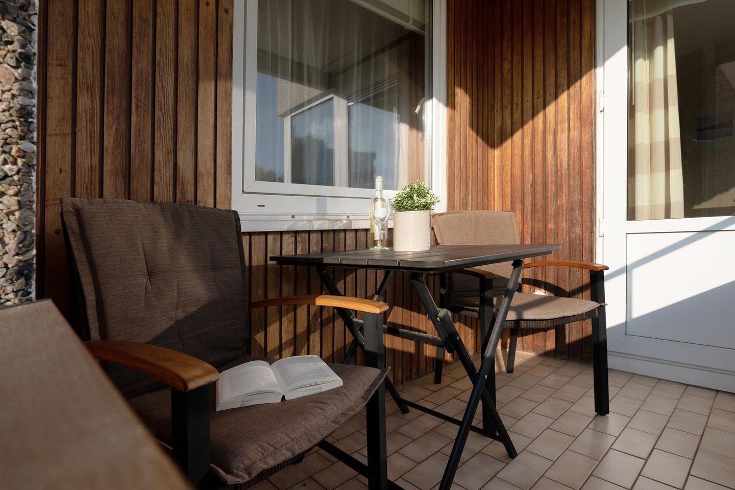 Der überdachte Balkon lädt zu entspannten Stunden im Freien ein. Von hier genießen Sie den Blick auf das Meer und können die frische Ostseeluft ebenso erleben wie das maritime Flair des Ortes. Für Gäste der Wohnung steht zudem ein kostenloser, privater Parkplatz auf dem Grundstück zur Verfügung. Die Ferienwohnung ist eine Nichtraucherunterkunft, was das Wohlbefinden vieler Gäste zusätzlich erhöht.