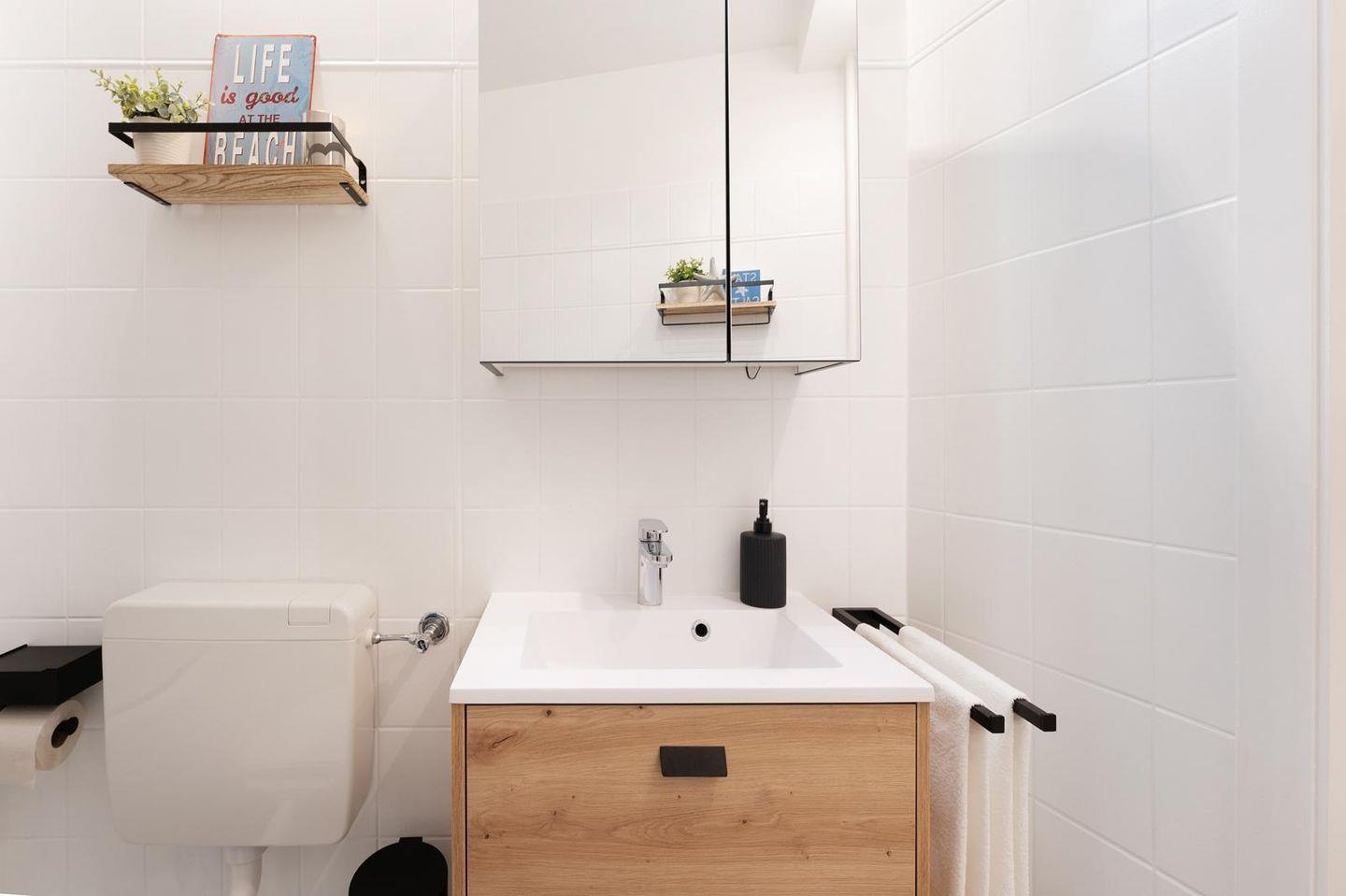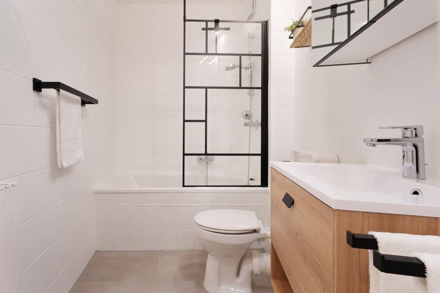 Das Badezimmer ist sowohl praktisch als auch komfortabel ausgestattet: Es verfügt über Badewanne und Dusche, ein Waschbecken, WC, Haartrockner sowie einen Ganzkörperspiegel. Warmes Wasser und eine Erstausstattung an Hygieneartikeln werden bereitgestellt. Waschmaschine und Trockner stehen gemeinschaftlich zur Nutzung bereit und runden die Ausstattung für längere Aufenthalte komfortabel ab. Weitere praktische Annehmlichkeiten wie Bügeleisen, Bügelbrett, Wäscheständer und Staubsauger liegen bereit.