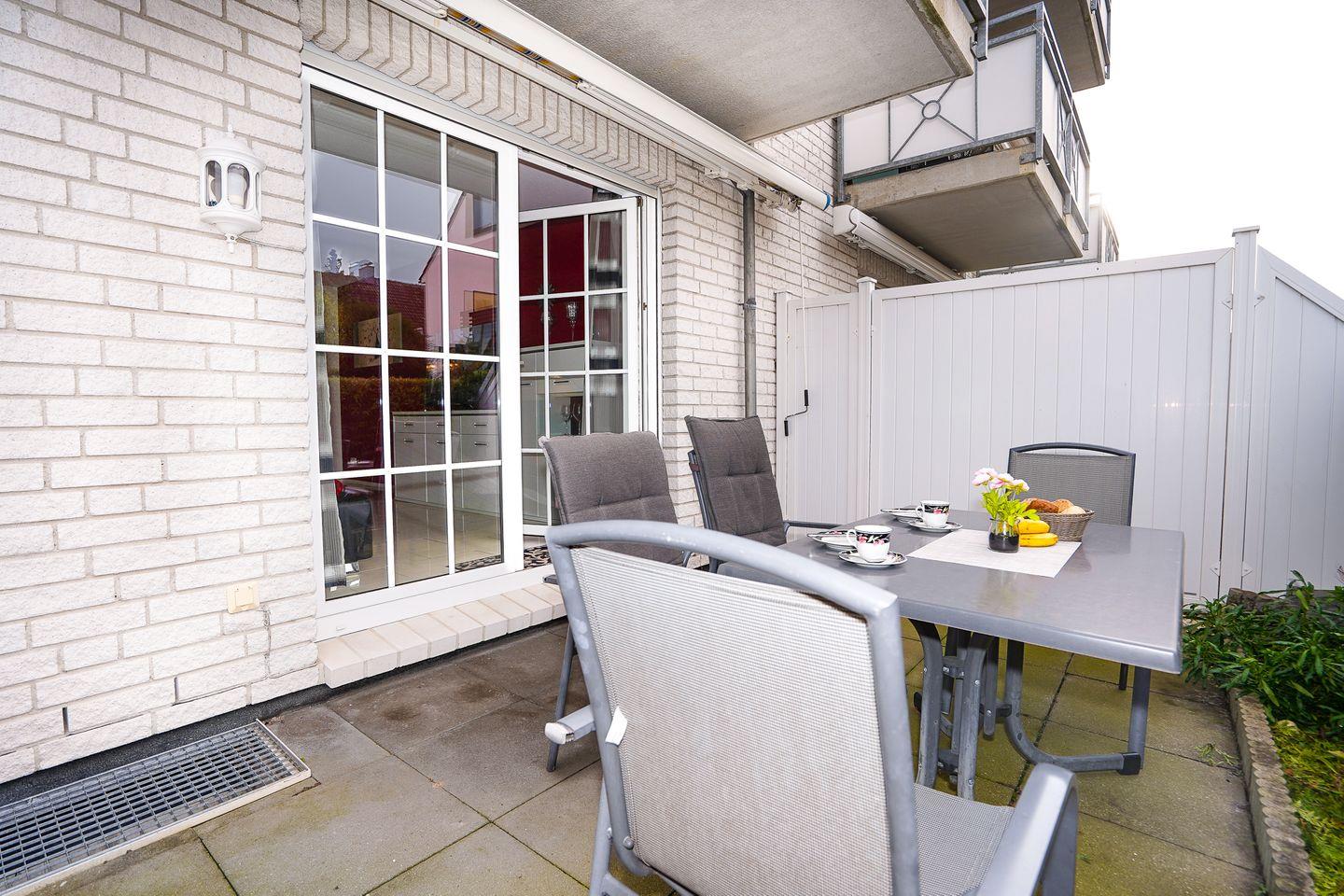 Die Unterkunft bietet direkten Zugang zu einer eigenen, schön angelegten Terrasse im Erdgeschoss. Hier erwarten Sie bequeme Gartenmöbel, die zum Verweilen und dem Genuss ruhiger Momente im Freien einladen.