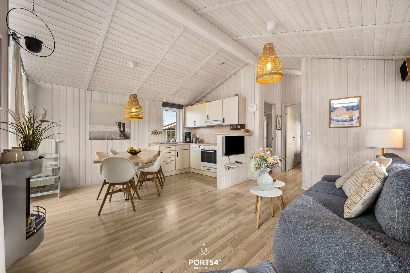 Das im Jahr 2011 errichtete und zuletzt 2021 renovierte Ferienhaus ist allergikerfreundlich gestaltet und verfügt über eine ebenerdige Raumaufteilung, die sich auf ein Wohnzimmer mit moderner Sofaecke, einen offenen Essbereich und eine offene, zum Wohnzimmer integrierte Küche verteilt. Die Böden sind mit pflegeleichtem Vinyl ausgestattet. Für wohlige Wärme sorgt eine Gasheizung, an kühleren Tagen steht Dir zusätzlich ein Kaminofen zur Verfügung.