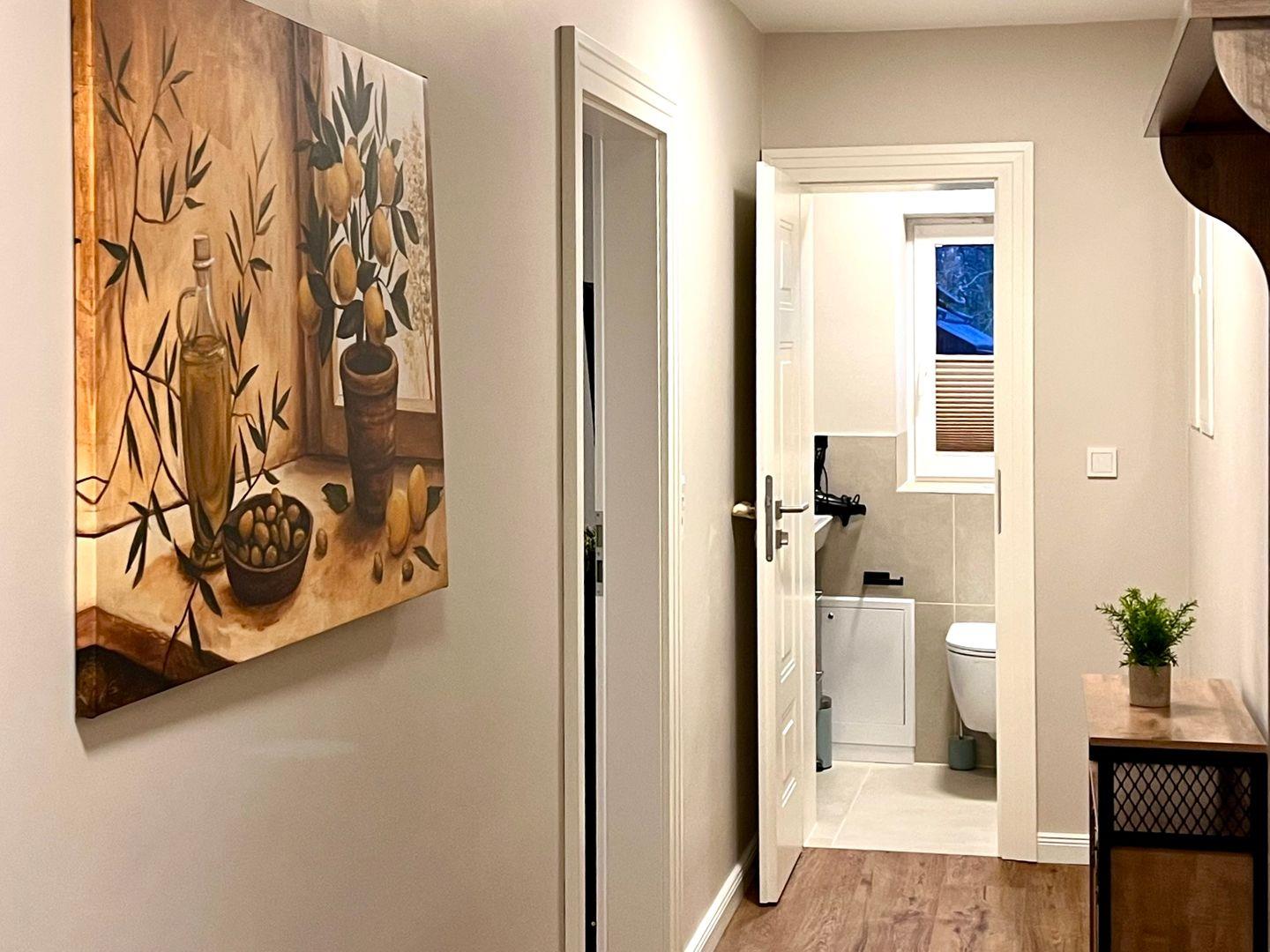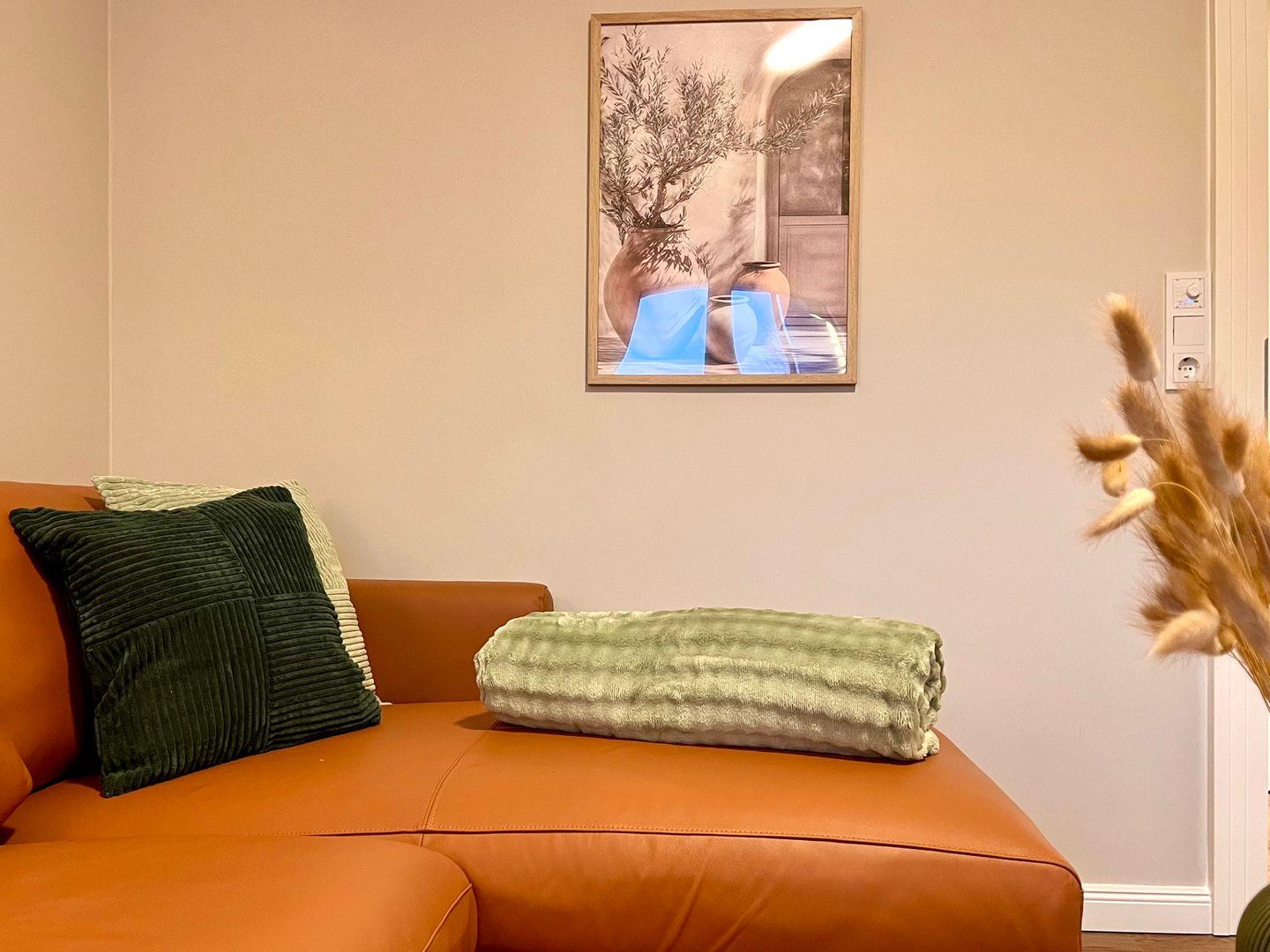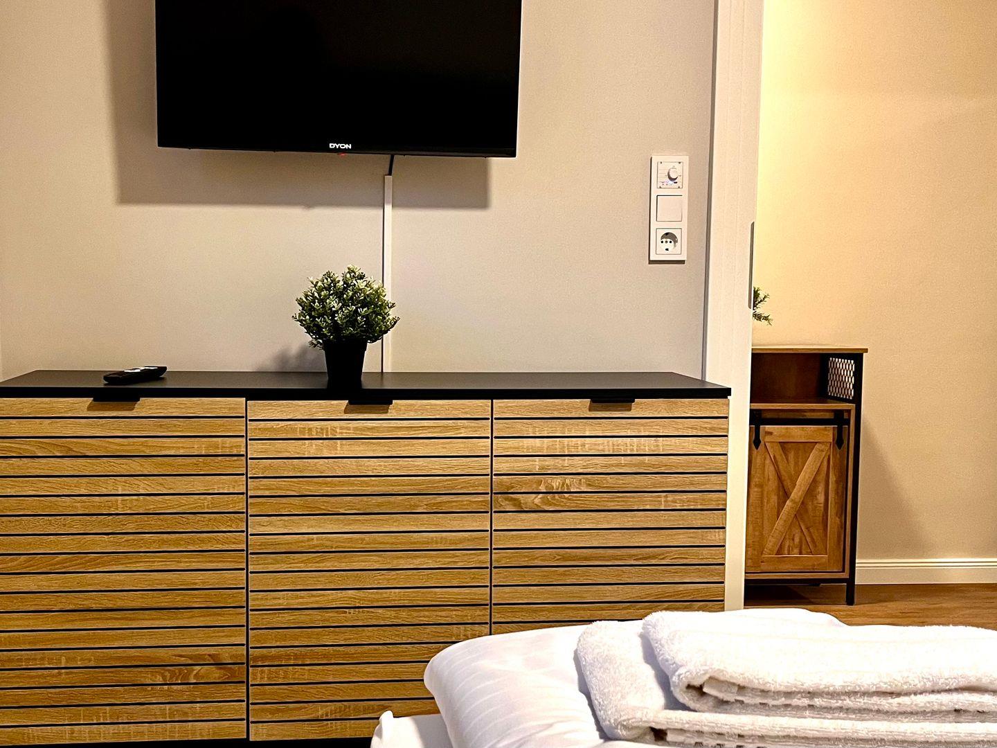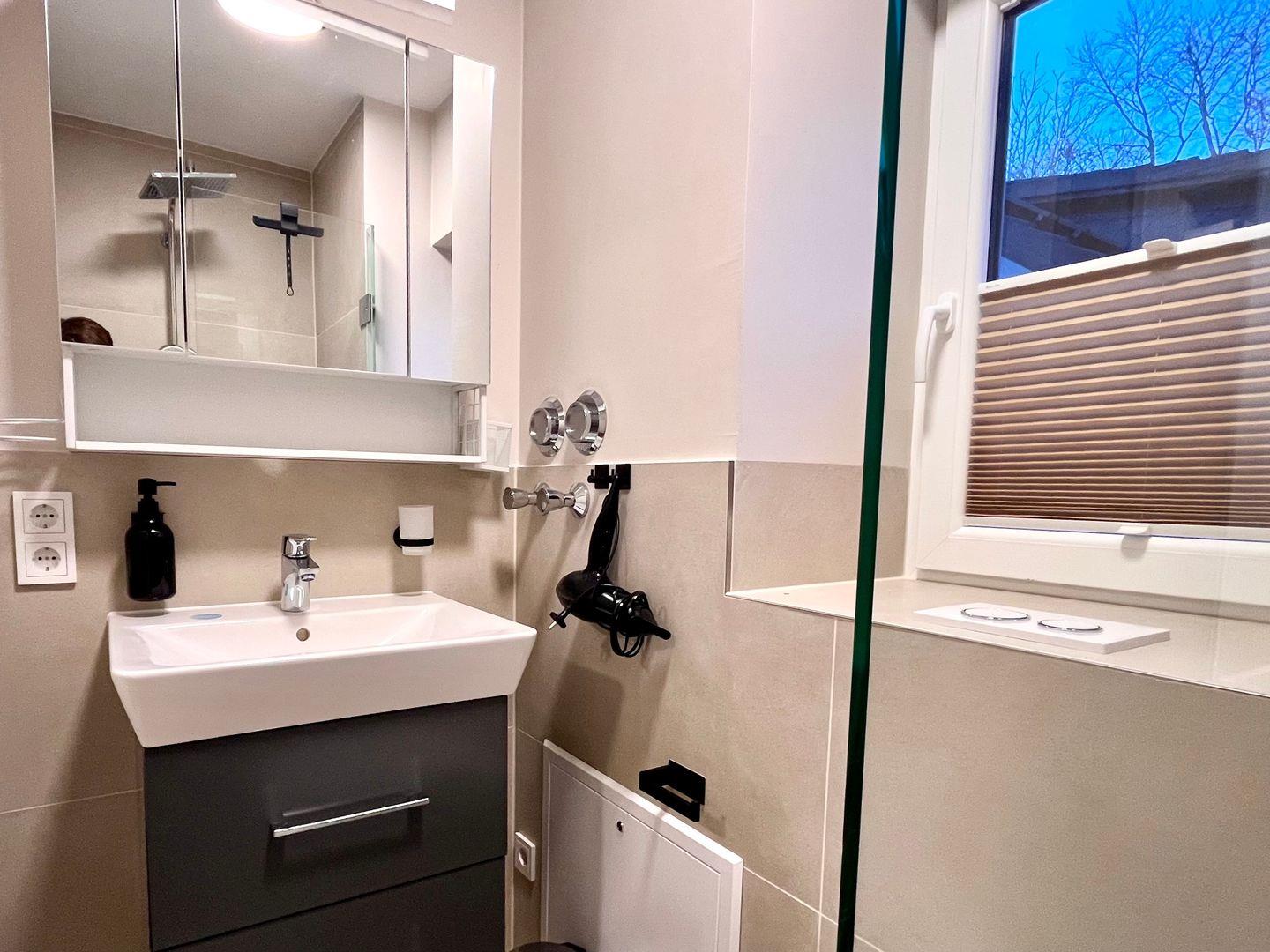 Das Badezimmer ist mit einer Dusche, ausgestattet. Für zusätzlichen Komfort sorgt ein Haartrockner. Bettwäsche und Handtücher werden gestellt, sodass Sie sich um nichts Weiteres kümmern müssen. Die zentrale Heizung garantiert angenehme Temperaturen zu jeder Jahreszeit. Der Wohnbereich ist geschmackvoll eingerichtet und bietet neben einem Sofa auch TV sowie Ablagemöglichkeiten wie eine Garderobe und Kommode.