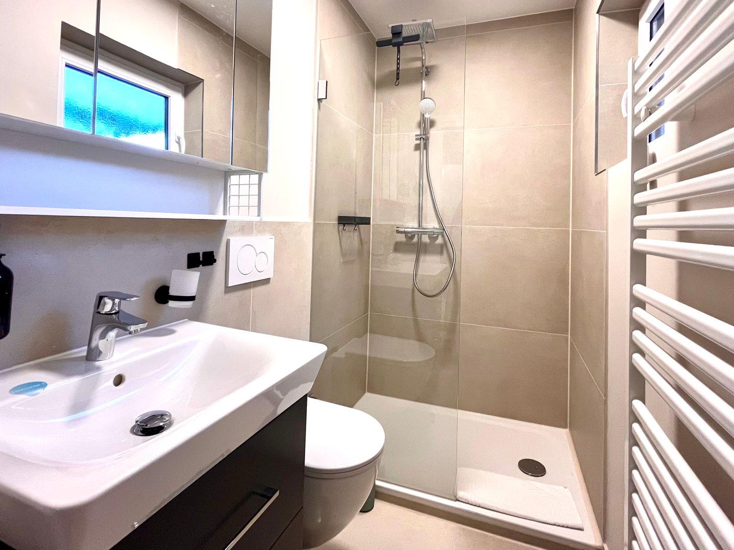 Das Badezimmer ist mit einer Dusche, Waschbecken, Spiegel, WC und Haartrockner funktional und modern ausgestattet. Bettwäsche, Handtücher und Geschirrhandtücher werden gestellt. Die Zentralheizung sorgt zu jeder Jahreszeit für angenehme Temperaturen; außerdem ist das Apartment als Nichtraucherunterkunft ausgewiesen. Betten mit offenem Fußende bieten zusätzlichen Komfort.