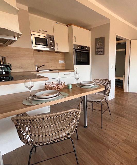 Das hell eingerichtete Wohnzimmer bietet ausreichend Platz für 4 Personen. Ein hochwertiges Schlafsofa (140 x 200)lässt Sie wie im eigenen Bett schlafen.
