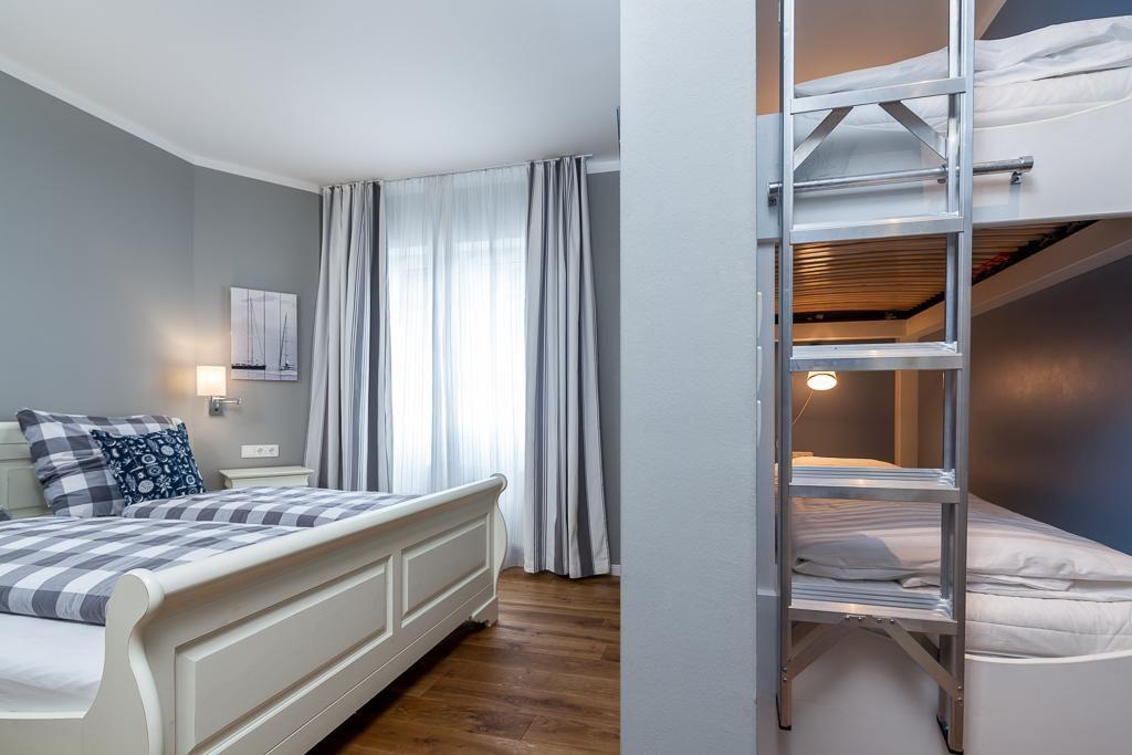 Eine Besonderheit für alle kleinen Seeratten ist das abgetrennte Kojen-Hochbett (1 x 2,10 m), bei dem durch zwei original Bullaugen immer Kontakt zu den Eltern besteht.