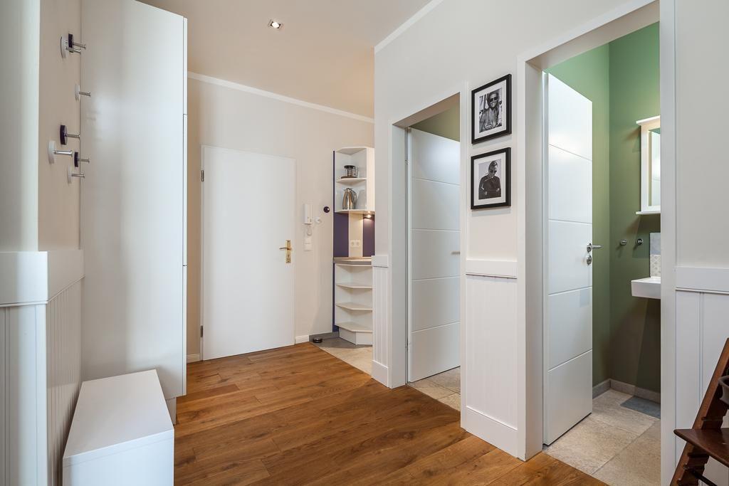 Die gesamte Wohnung ist mit Eiche-Vollholzdielen ausgelegt.