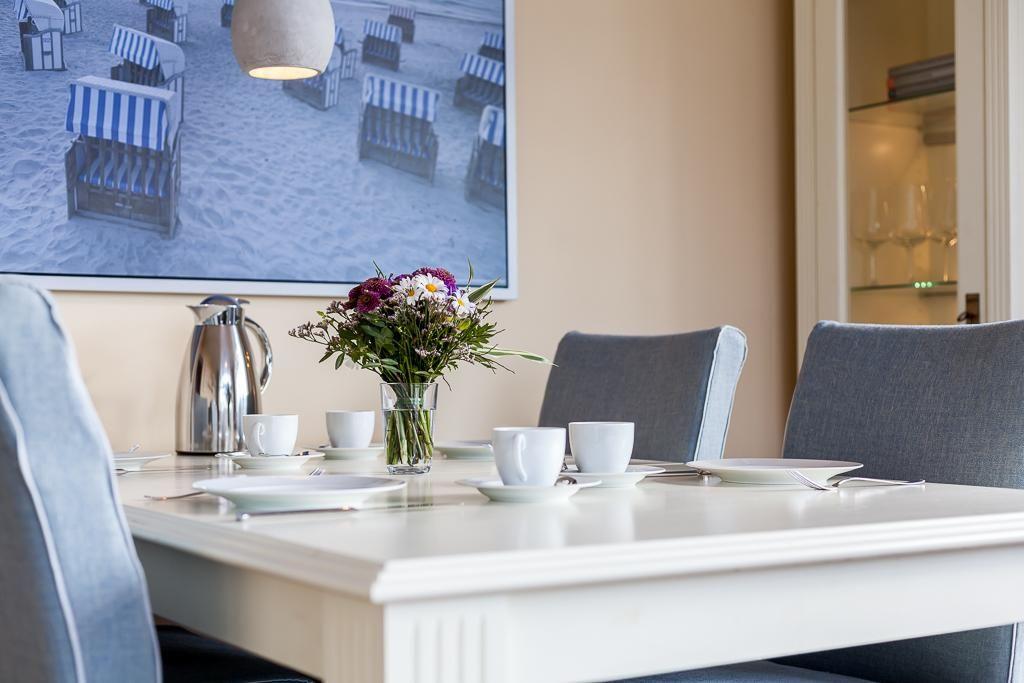 Im lichtdurchfluteten Wohnzimmer mit ausziehbarem Tisch für bis zu 6 Personen stehen zur Unterhaltung ein zweiter Flachbildfernseher und ein Blu-Ray-DVD/CD-Player bereit.