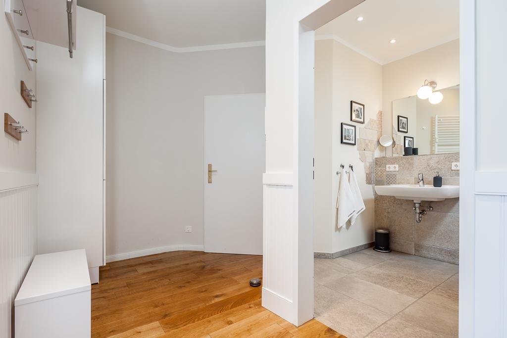 Die gesamte Wohnung ist mit Eiche-Vollholzdielen ausgelegt.
