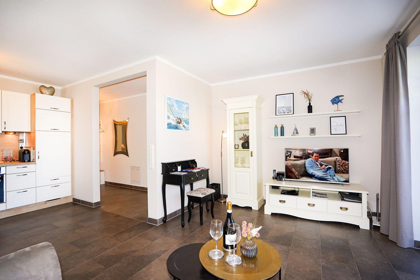 Komfortable 5-Sterne-Ferienwohnung Strandhafer in Grömitz, nur 400 m zum Sandstrand mit Terrasse und kostenfreiem WLAN.