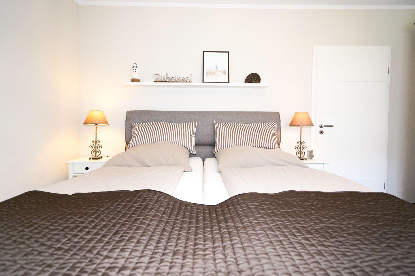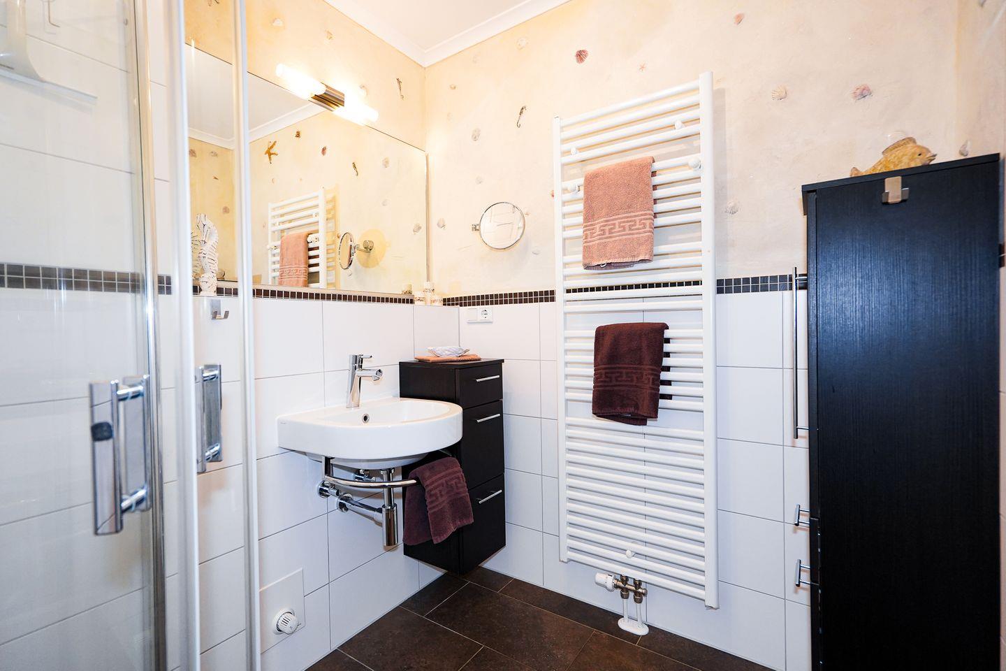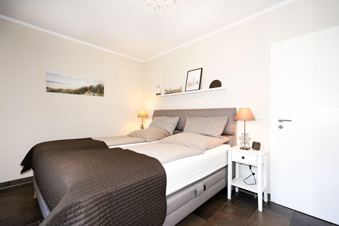 Das geschmackvoll eingerichtete Schlafzimmer und das exklusive Duschbad, mit bodengleicher Dusche, sind ebenfalls von der Diele aus zu erreichen.