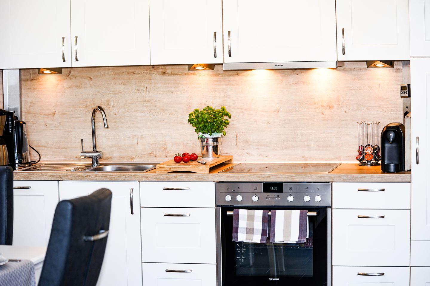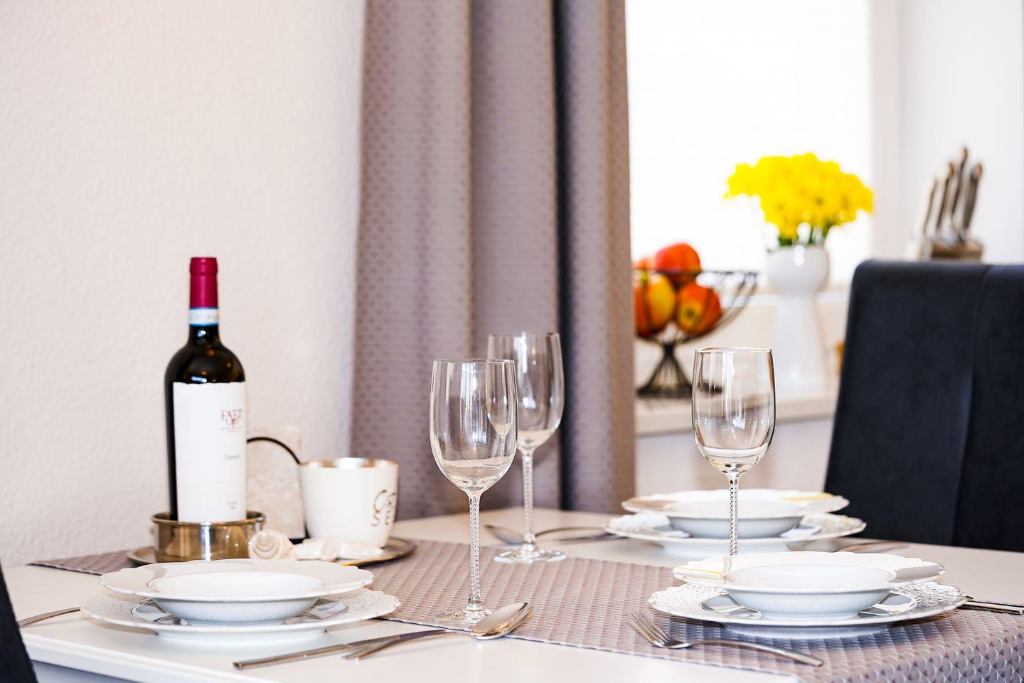 Auf großzügigen 56 qm, die ideale Größe für 2 bis 3 Personen, finden Sie vom Eingangsbereich kommend, das offene Wohnzimmer mit Schlafcouch (ca. 140cm x 180cm), Leseecke zum Entspannen, eine gut ausgestattete integrierte Küchenzeile (Spülmaschine, Backofen, Mikrowelle, Kühlschrank mit Gefrierfach, Cerankochfeld, Kaffeemaschine etc.) mit gemütlichem Essplatz und Zugang zur Terrasse.