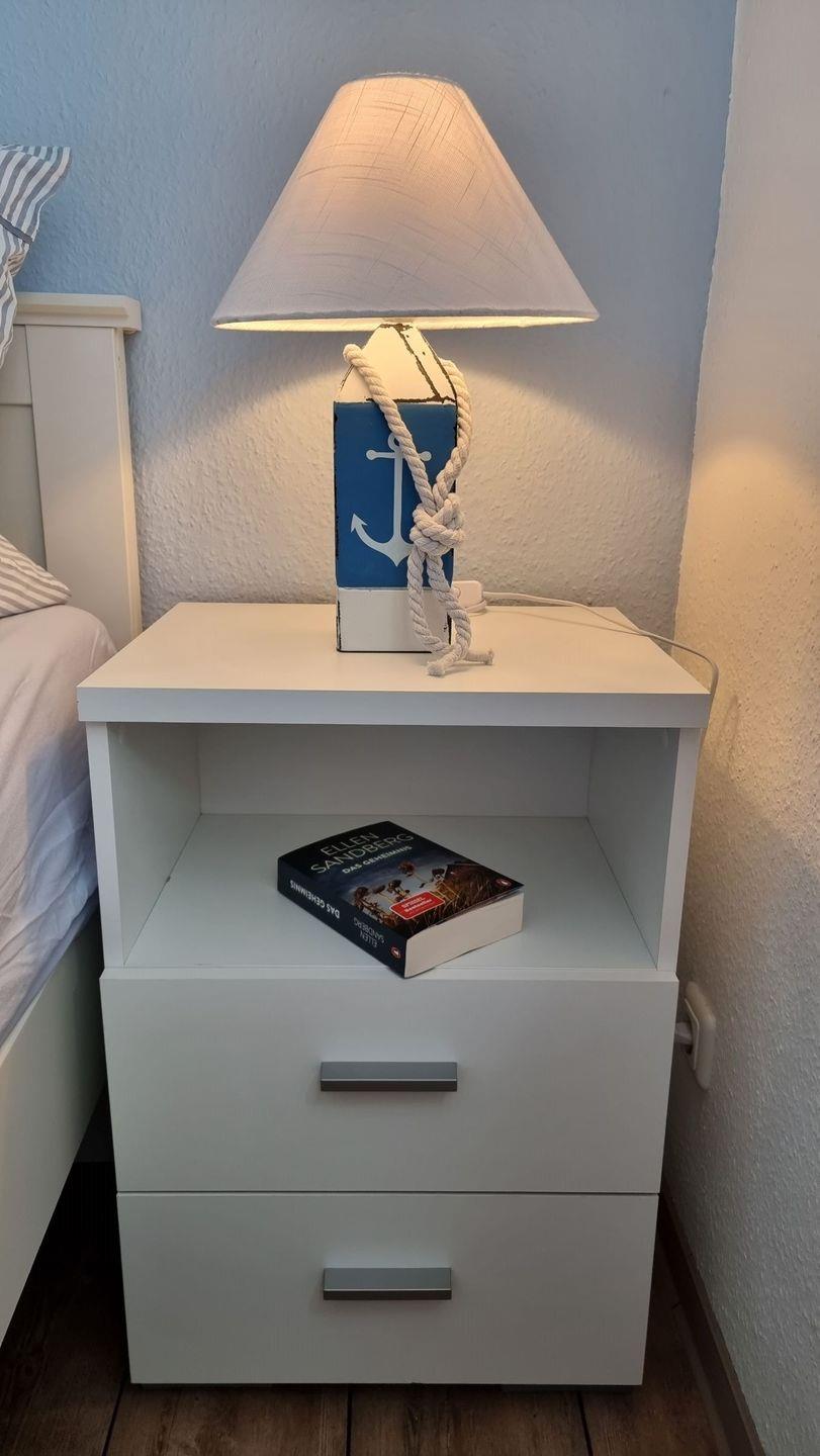 Im Schlafzimmer erwarten sie neue helle Schlafmöbel.