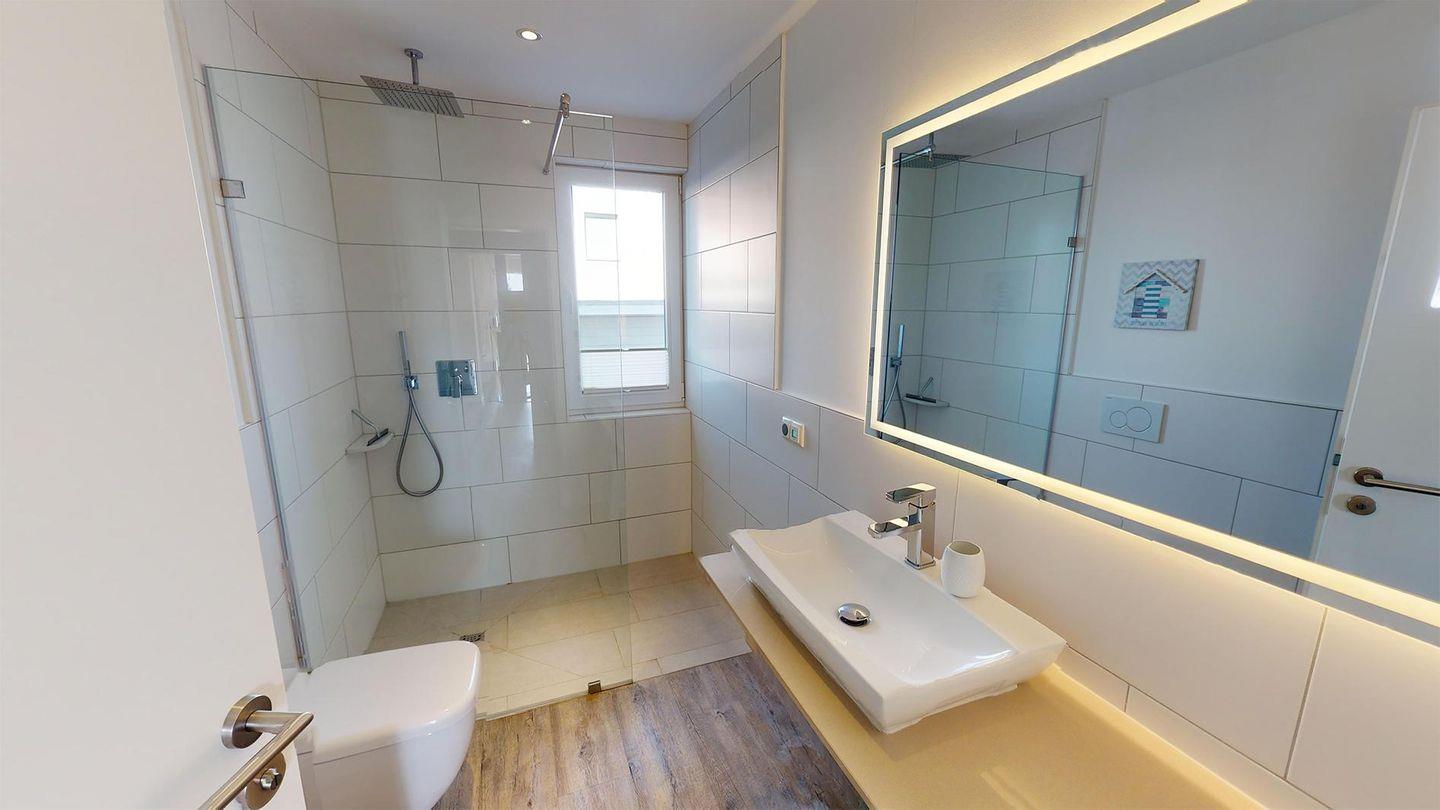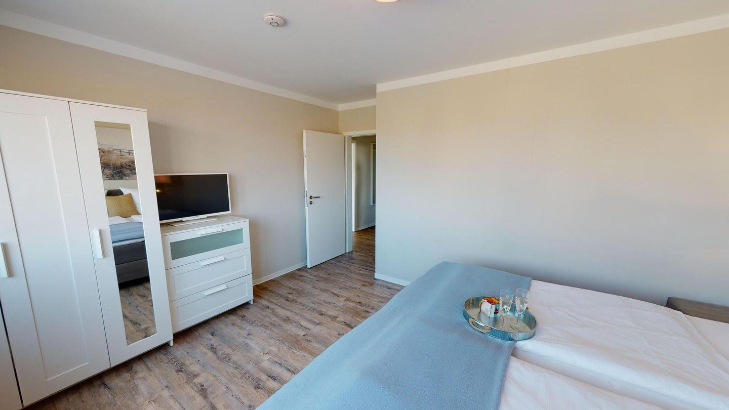 Die Wohnung befindet sich im Erdgeschoss der Beach'n'Sea Anlage. Zwei Schlafzimmer erwarten Sie mit gemütlichen Boxspringbetten, Verdunkelungsplissees und Flachbild-Fernsehern. Es gibt ein Duschbad mit bodengleicher Dusche und ein weiteres Duschbad mit zusätzlicher Whirlwanne. Beide Bäder sind mit beleuchteten Wand- und Kosmetikspiegeln, Wandradios mit Bluetooth-Verbindung und einem Fön ausgestattet.