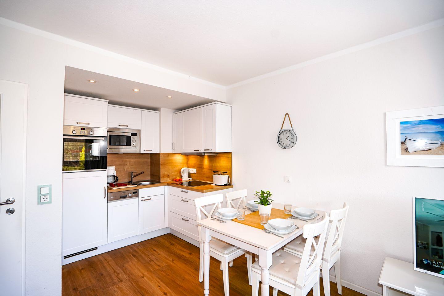 Die hochwertige offene Küche ist mit allen wichtigen Küchengeräten für Ihren Ferienaufenthalt ausgestattet.