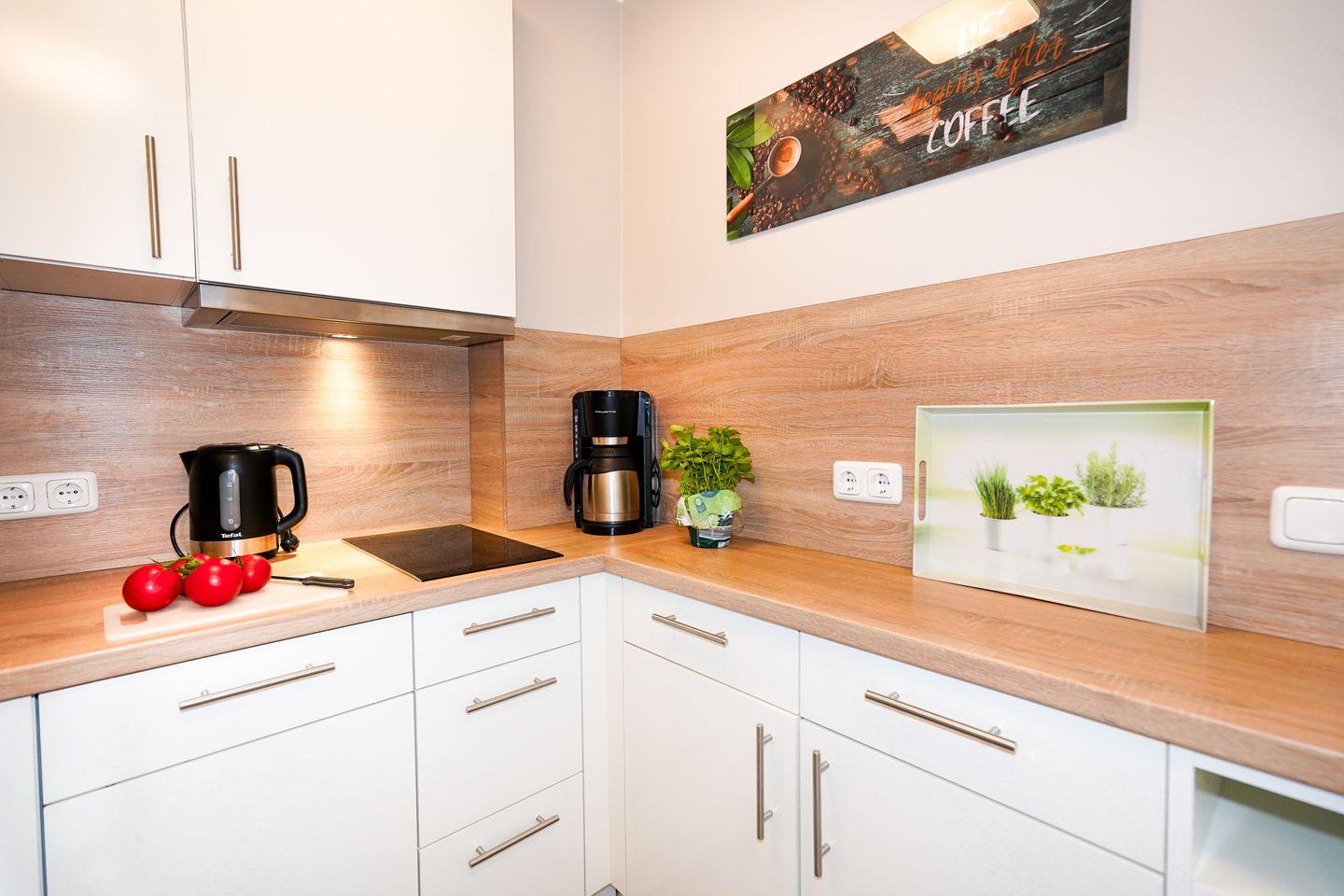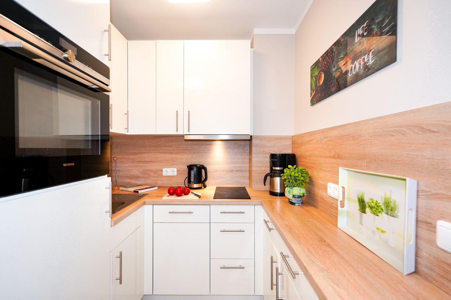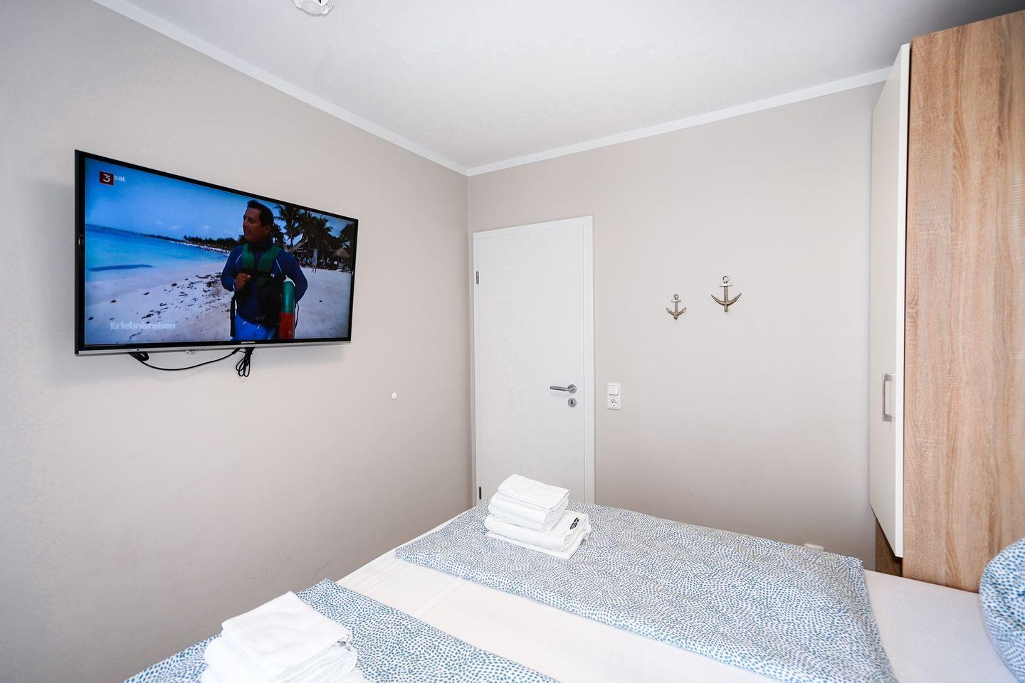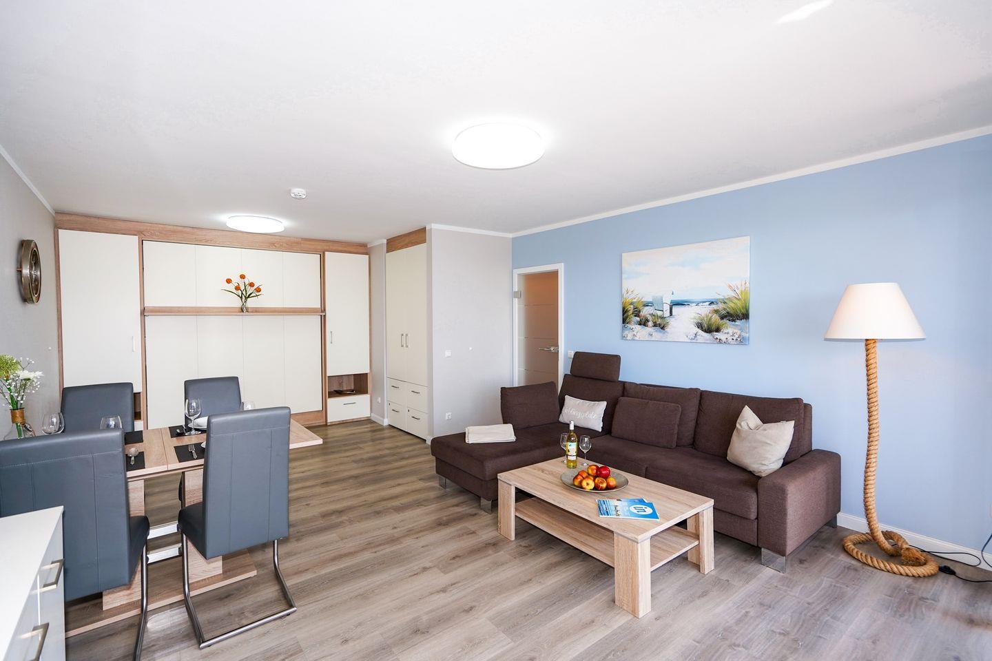 Der Prinzenhof ist eine sehr gepflegte Apartmentanlage in bevorzugter und zentraler Lage ,nur ca. 90 Meter zum Strand. Die helle, im 2. Stock gelegene neu möbliert und renovierte 2-Zimmer-Wohnung ist ideal für den Strandurlaub. Das sonnige Wohnzimmer ist ausgestattet mit einem großen Sofa, ein Essplatz für 4 Personen und einem Schrankbett (2 x 90 x 200). Das Schrankbett ist höher gelegen und daher angenehm zum Ein.- und Aussteigen. Kleiderschränke sind auch im Wohnzimmer vorhanden. Ein großer Flach-TV mit 125 cm Diagonale, WLAN und Radio/CD runden das Bild ab. Das Wohnzimmerfenster lässt sich abdunkeln. Die Küche beinhaltet alle wichtigen Küchengeräte wie Geschirrspüler, Backofen mit Mikrowelle usw. Das Schlafzimmer ist mit einem Boxspringbett (2x90x200) und zwei Kleiderschränke ausgestattet. Die gesamte Wohnung ist mit Vinyl-Laminat ausgelegt. Vom Balkon in Südlage können Sie mit Teilmeerblick die Ostsee genießen.