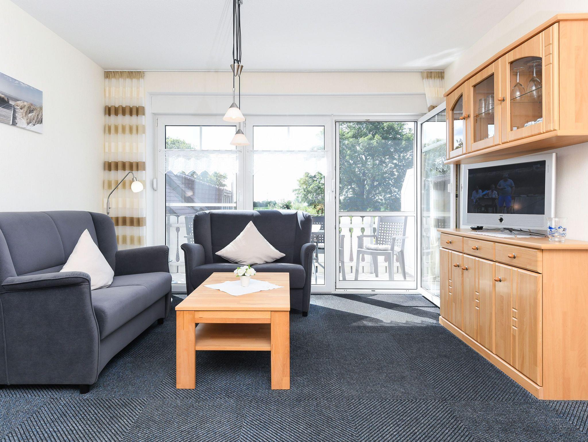 Gemütliche Ferienwohnung am Deich in Gründeich nahe Bensersiel mit Balkon und moderner Ausstattung für erholsame Tage an der Nordsee.