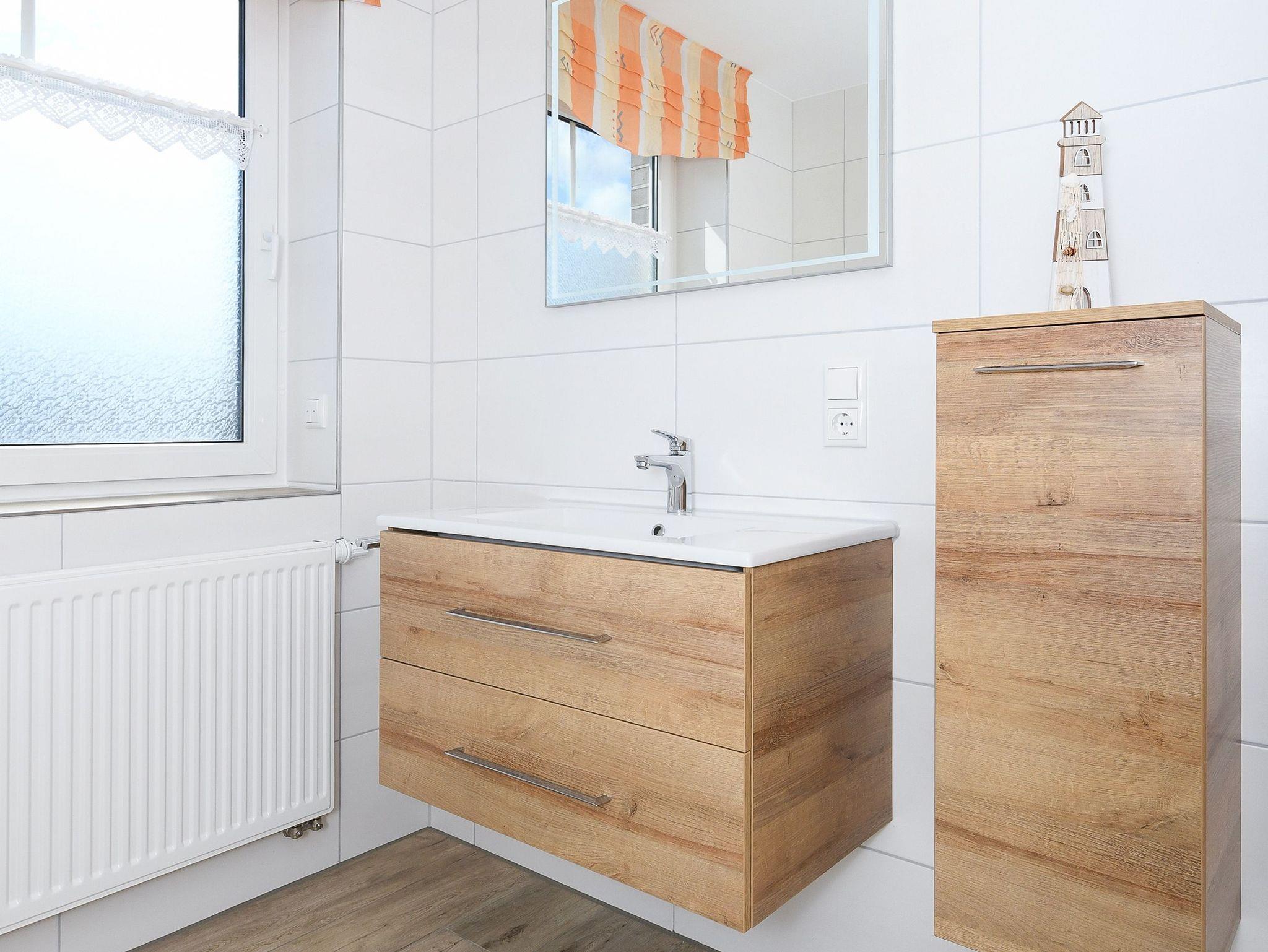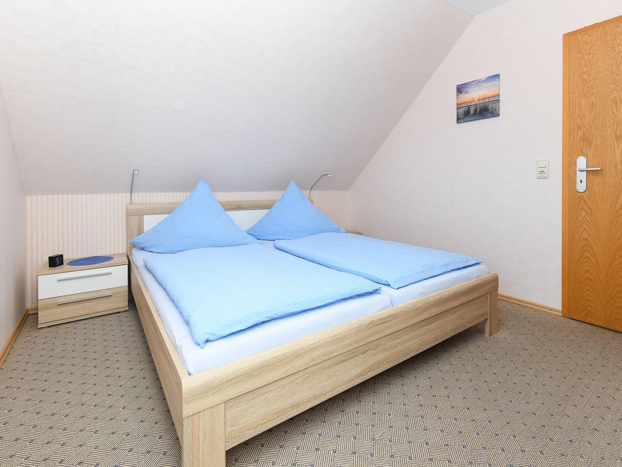 Größe ca. 60 Quadratmeter, Wohnraum mit integrierter Küche, Schlafzimmer, zweites separates Schlafzimmer/Kinderzimmer, Badezimmer mit Dusche, Waschtisch und WC, Obergeschoss, Balkon, Koffer-/Abstellraum, optimal für 2 bis 3 Personen.