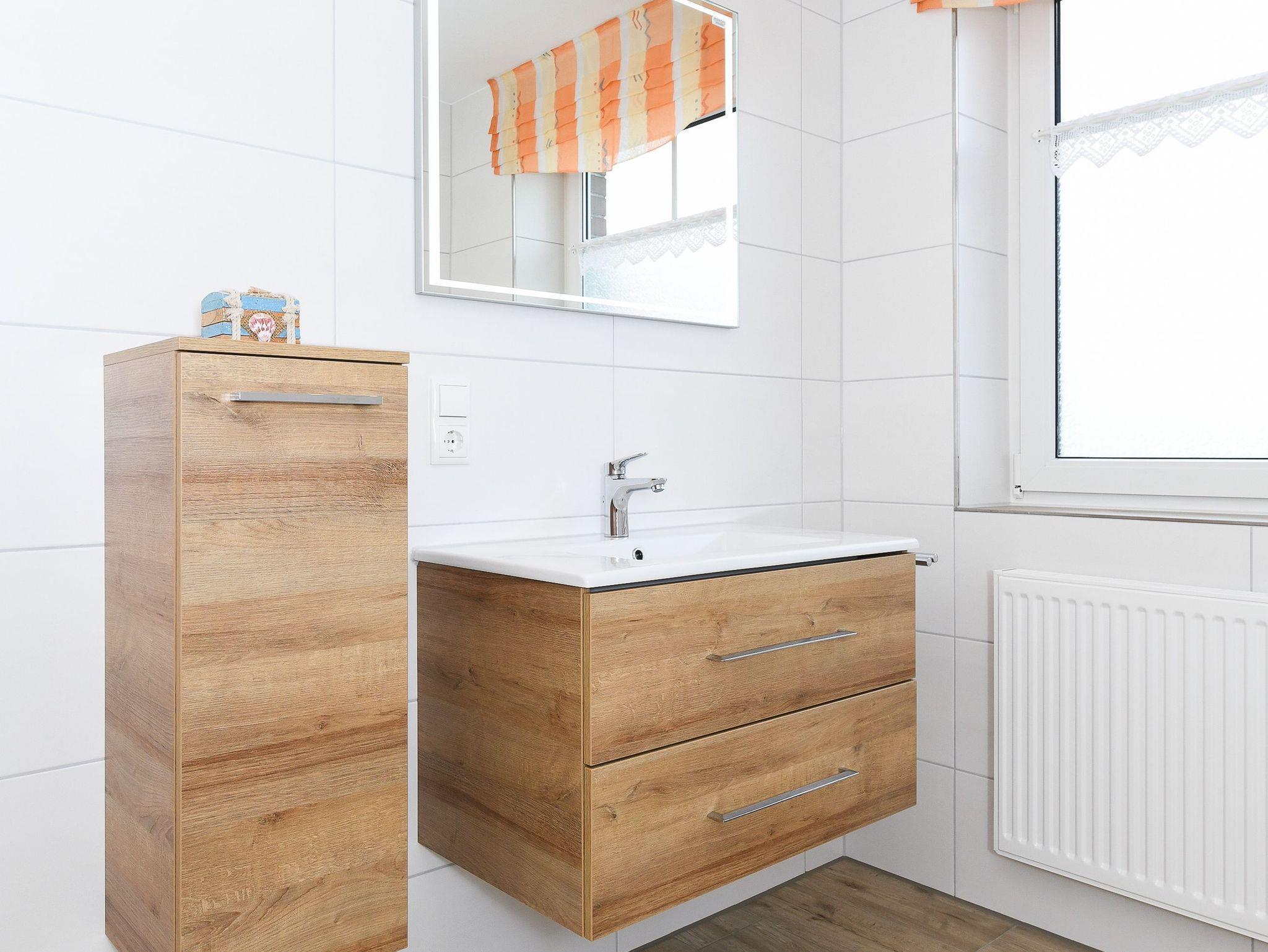 Größe ca. 60 Quadratmeter, Wohnraum mit integrierter Küche, Schlafzimmer, zweites separates Schlafzimmer/Kinderzimmer, Badezimmer mit Dusche, Waschtisch und WC, Obergeschoss, Balkon, Koffer-/Abstellraum, optimal für 2 bis 3 Personen.