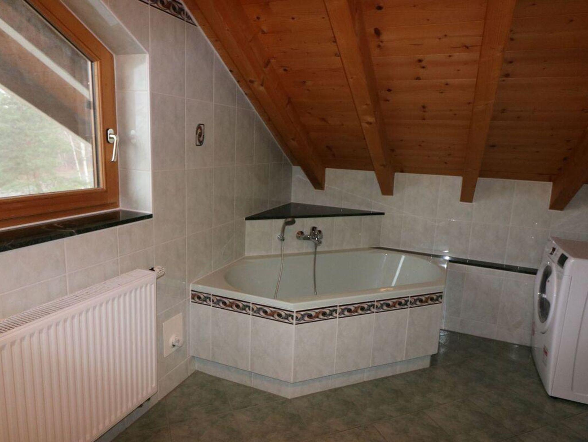 Badausstattung: Eckbadewanne, Dusche und Waschbecken, WC, Spiegelschrank, Waschmaschine inkl. Trockner, Handtuchhalter