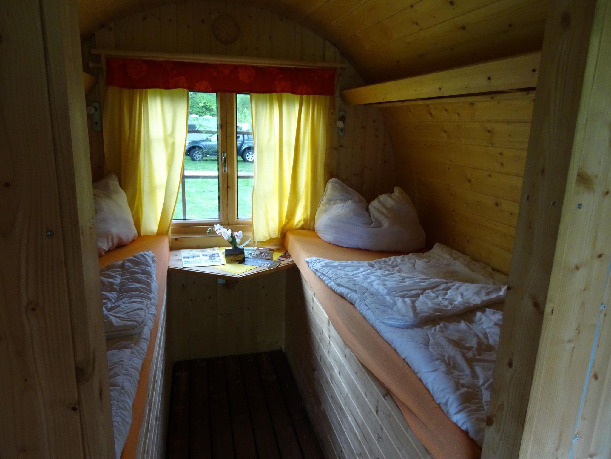 Sie bieten in Einzelbetten Platz für zwei Personen. Sie haben keinen umfangreichen Komfort, jedoch können Sie entscheiden ob Sie die Bettwäsche mitbringen oder mieten.