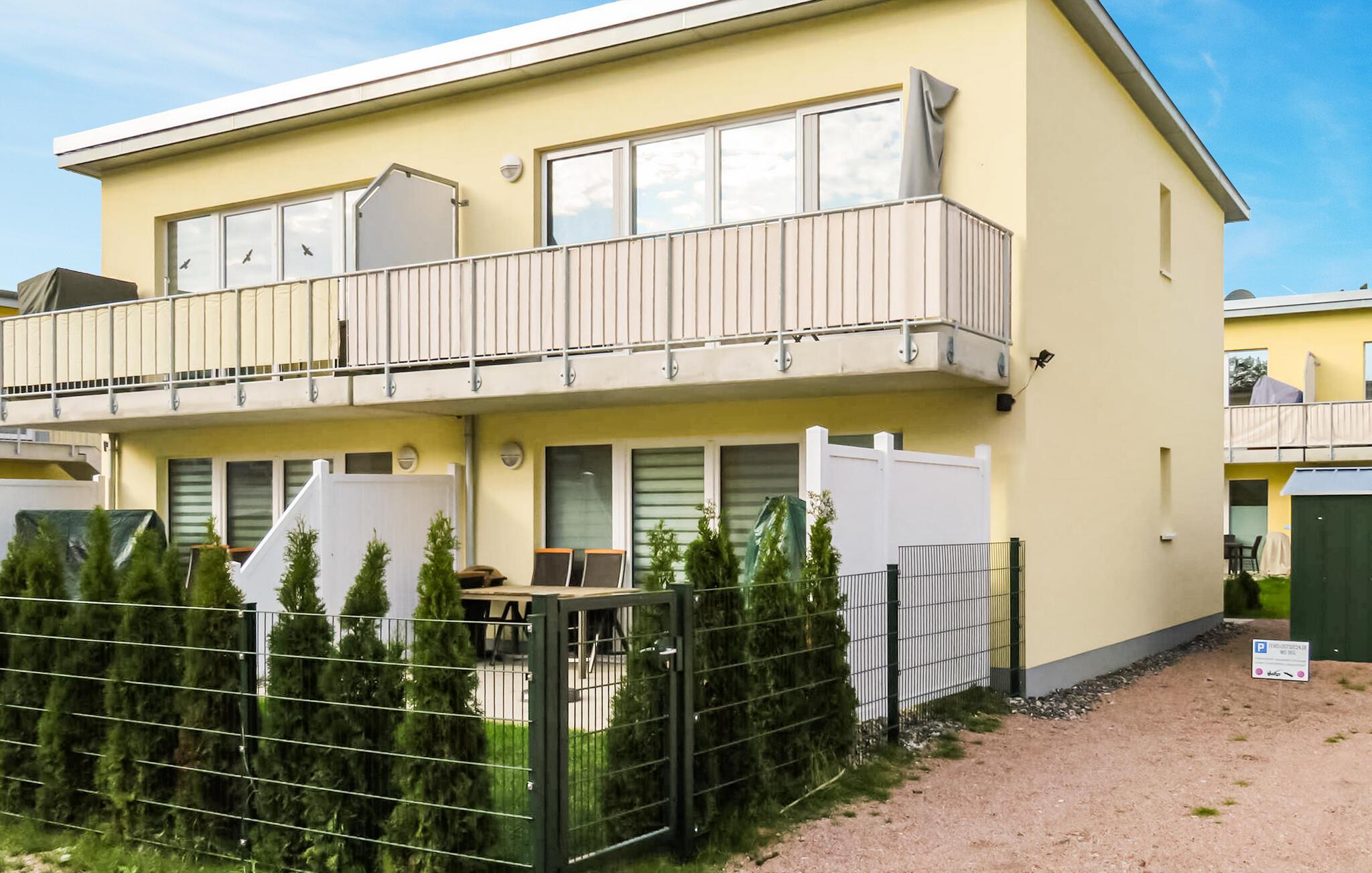 Die 43 qm große Zweiraum-Ferienwohnung für max. 4 Personen befindet sich separat im Obergeschoss eines Ferienhauses (4-WE) innerhalb einer Ferienanlage im Küstenwald vom Ostseebad Graal-Müritz. Der Ostseestrand ist nur etwa 1,8 km entfernt. Das Ferienhaus wurde im Jahr 2018 neu erbaut und die Wohnung komfortabel ausgestattet. Der Zugang erfolgt über eine separate Außentreppe. Vorhanden sind ein Wohnraum (Polstermöbel mit Schlaffunktion, Flachbild-TV, Radio), eine offene Küchenzeile (Essecke, E-Herd mit Backofen und Mikrowellenfunktion, Kühlschrank mit Tiefkühlteil, Spülmaschine, div. Küchengeräte), ein Schlafraum (Doppelbett) sowie ein Bad mit DU/WC.