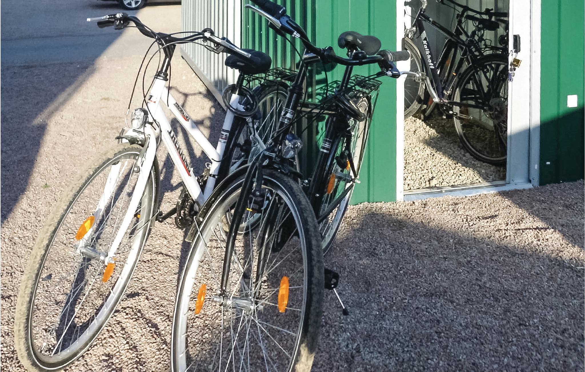 Im wetterfesten Abstellhaus steht ausreichend Platz für maximal 4 selbstmitgebrachte Fahrräder zur Verfügung. Zudem ein Strandbollerwagen im Abstellhaus.