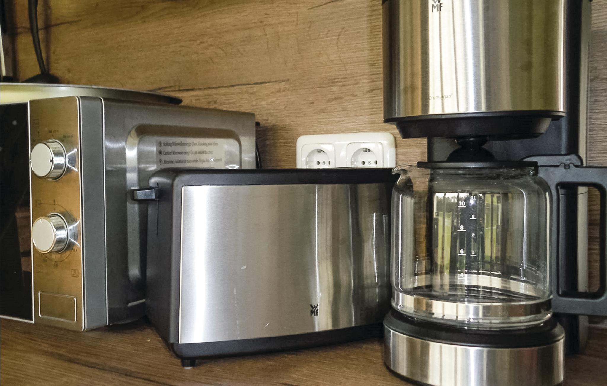 Im separaten Schlafzimmer befindet sich ein gemütliches Doppelbett mit einer bequemen Breite von 1,8 m. Das Fenster verfügt über einen Insektenschutz sowie Rolladen zur Verdunklung, damit Sie hier einen erholsamen Schlaf finden. Zwei weitere Schlafmöglichkeiten befinden sich im Wohnbereich mit hochwertiger Küchenzeile, die u.a. mit Wasserkocher, Mikrowelle und Dunstabzugshaube ausgestattet ist.