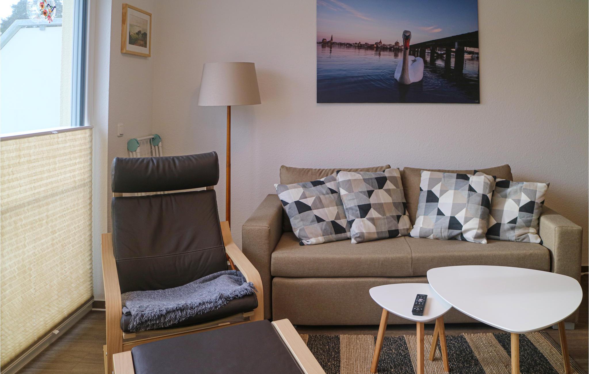Gemütliche Ferienwohnung im Küstenwald nahe Ostsee mit Balkon und Strandkorb für erholsamen Urlaub.