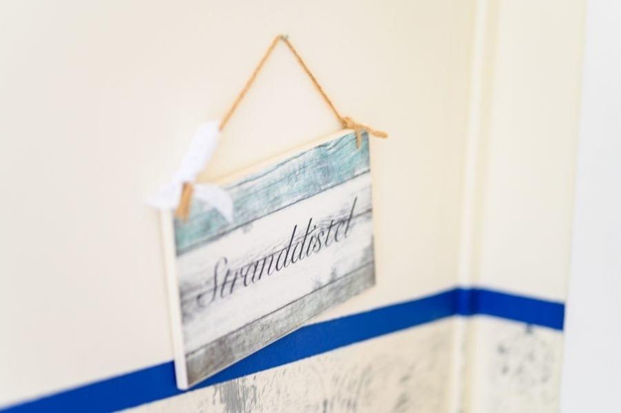 Die Ferienwohnung „Stranddistel“ befindet sich im 1. Stock des Haupthauses der Villa Christiana. Auf gut 30 Quadratmetern befinden sich ein Flur mit abgeschlossenem, begehbarem Schrankraum (unter Hochbett), eine Küche mit vorgelagertem Essbereich, ein Badezimmer (DU/WC), ein Schlafzimmer mit einem Doppelbett und einem Leiter-Hochbett (1,36 breit).