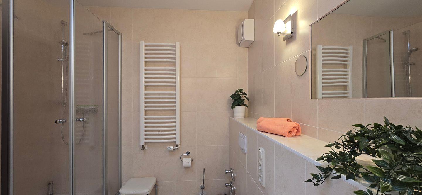 - Badezimmer mit Dusche und Waschmaschine