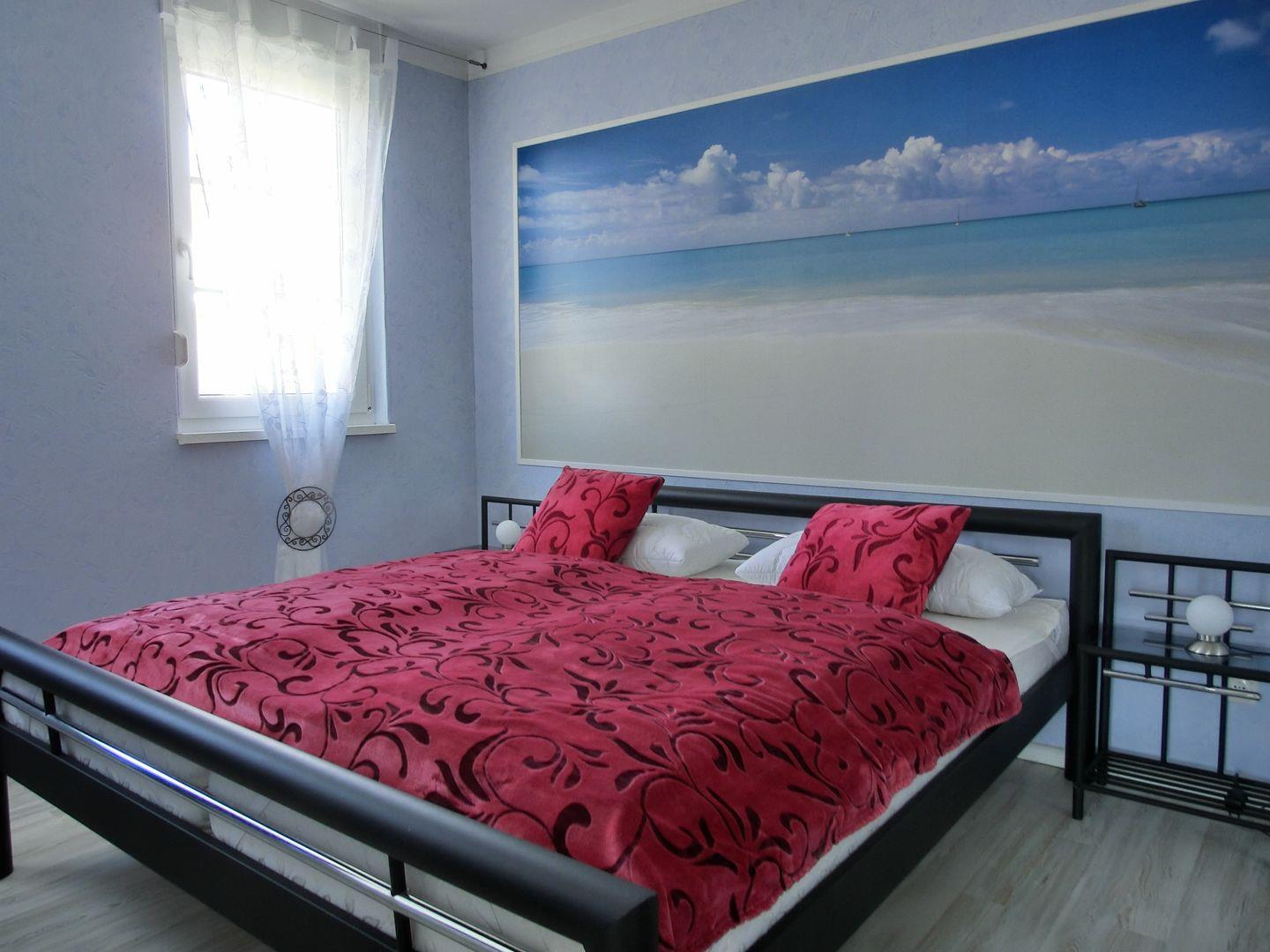 - 1 Schlafzimmer mit Doppelbett (180 cm x 200 cm) und zusätzlichem TV