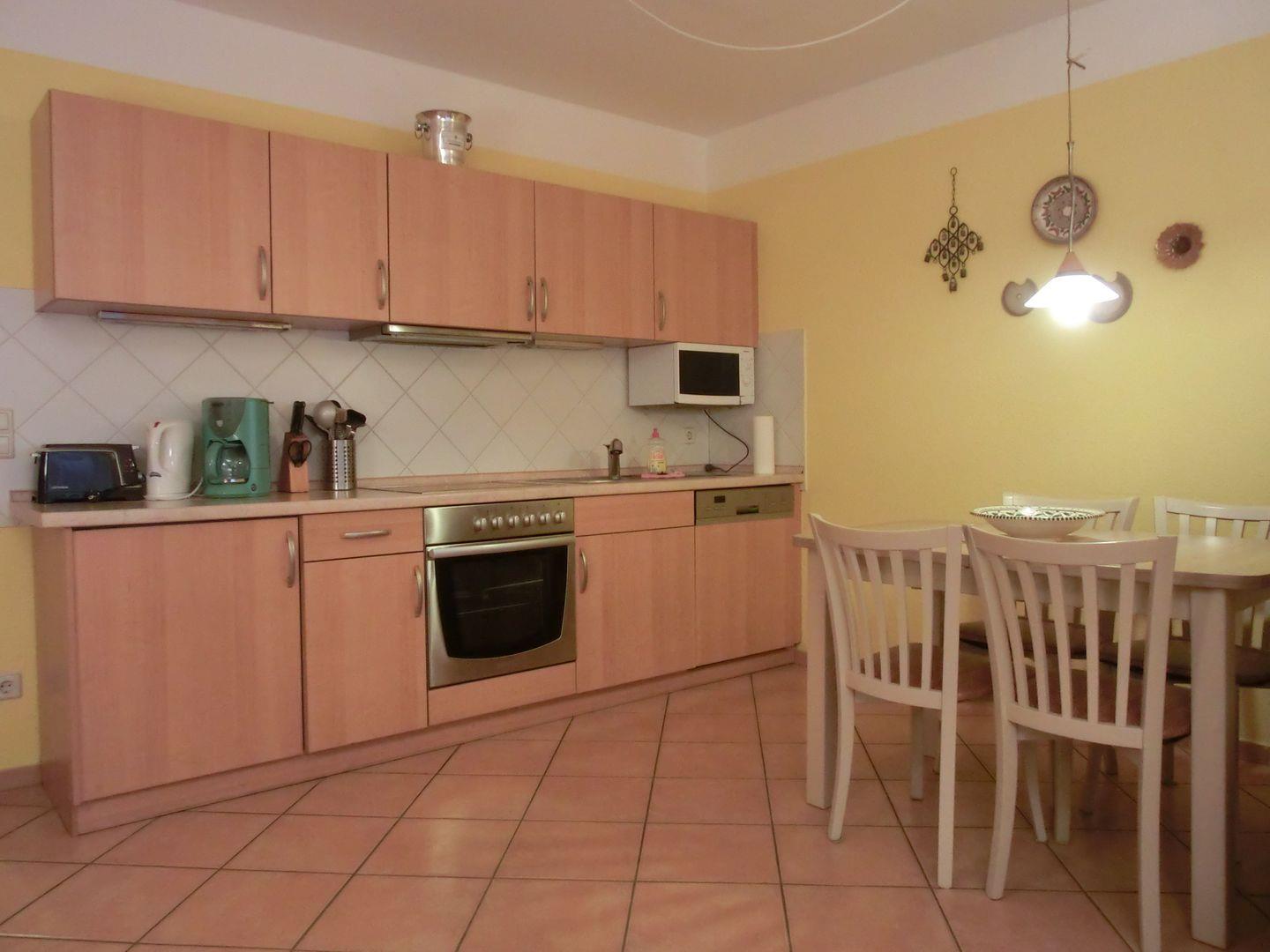 - offene Einbauküche inkl. Geschirrspülmaschine, Kühlschrank, Herd mit