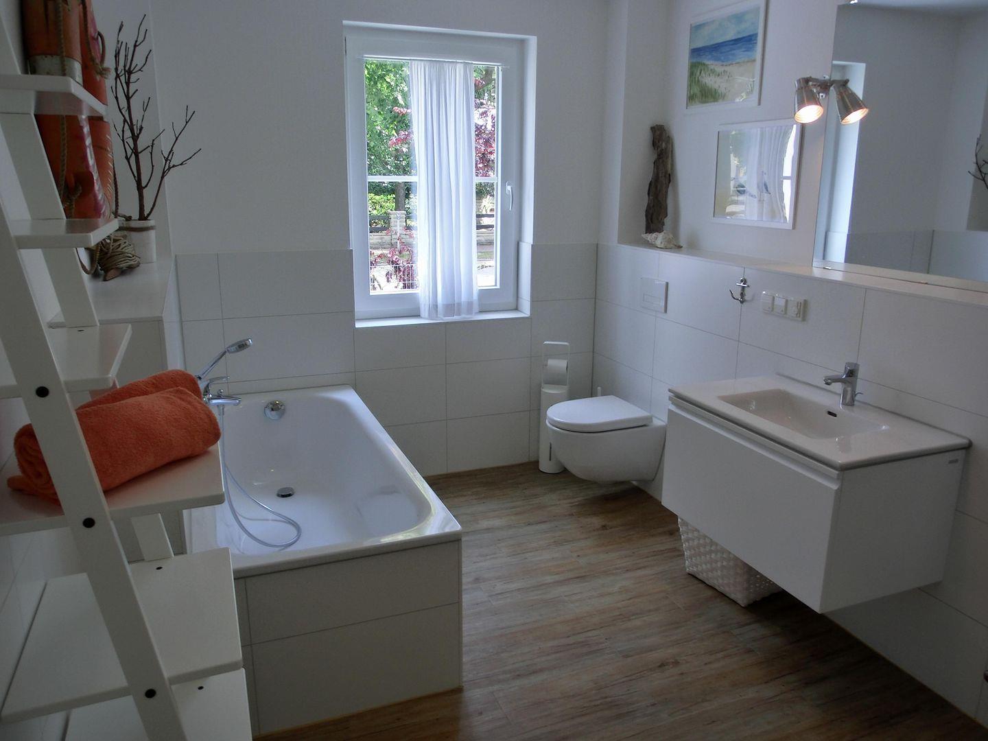 - 1 großes Tageslichtbadezimmer mit Badewanne und Dusche