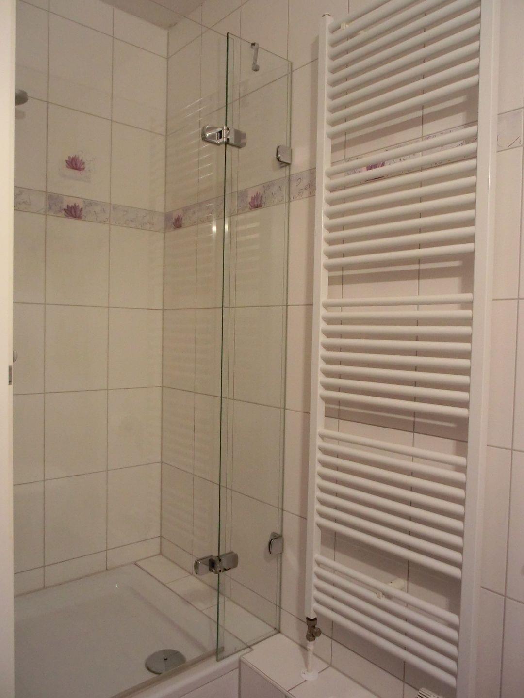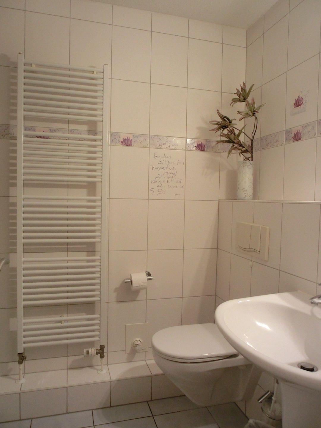 • Badezimmer mit Dusche, WC und Heizkörper