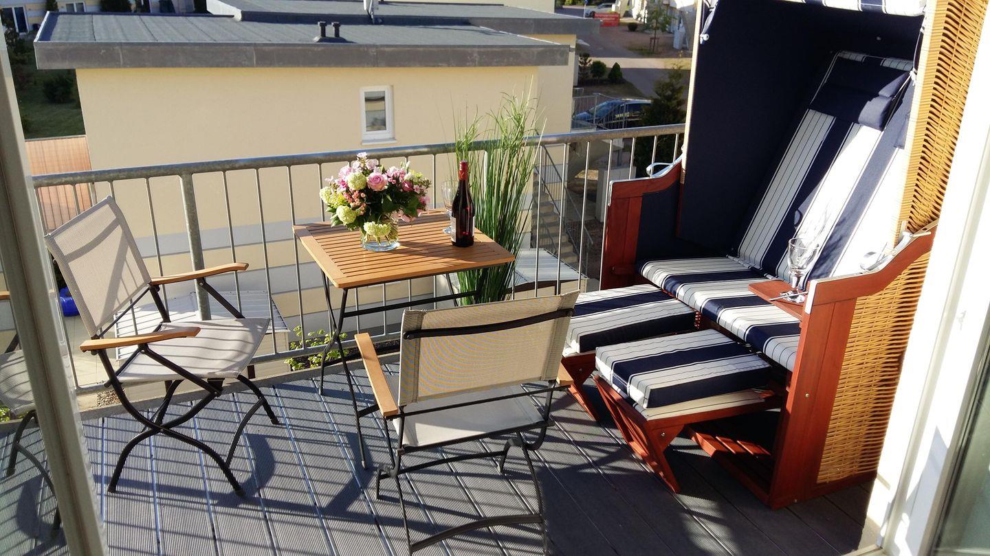 - Strandkorb auf dem Balkon