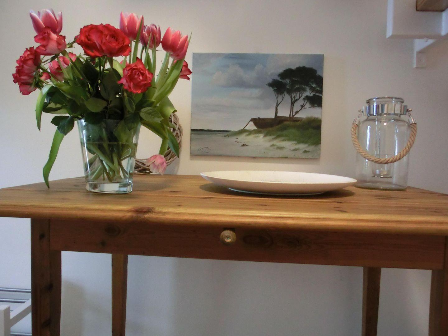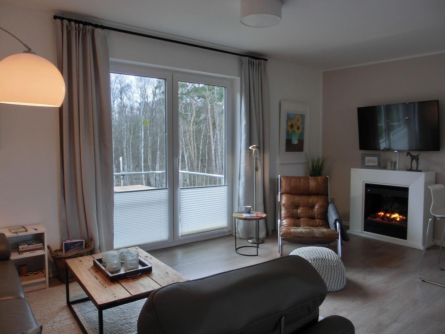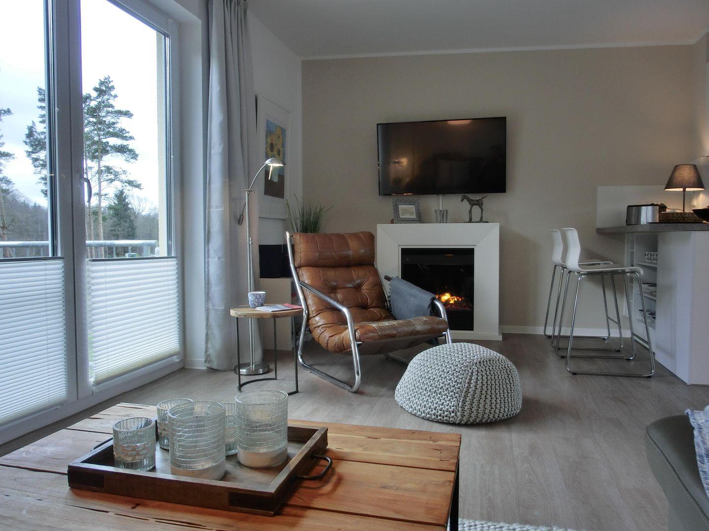 - die Ferienwohnung verfügt über einen großen Wohnbereich mit Elektrokamin (Deko) und Sat-TV, Radio, CD- und DVD-und Blu Ray-Spieler