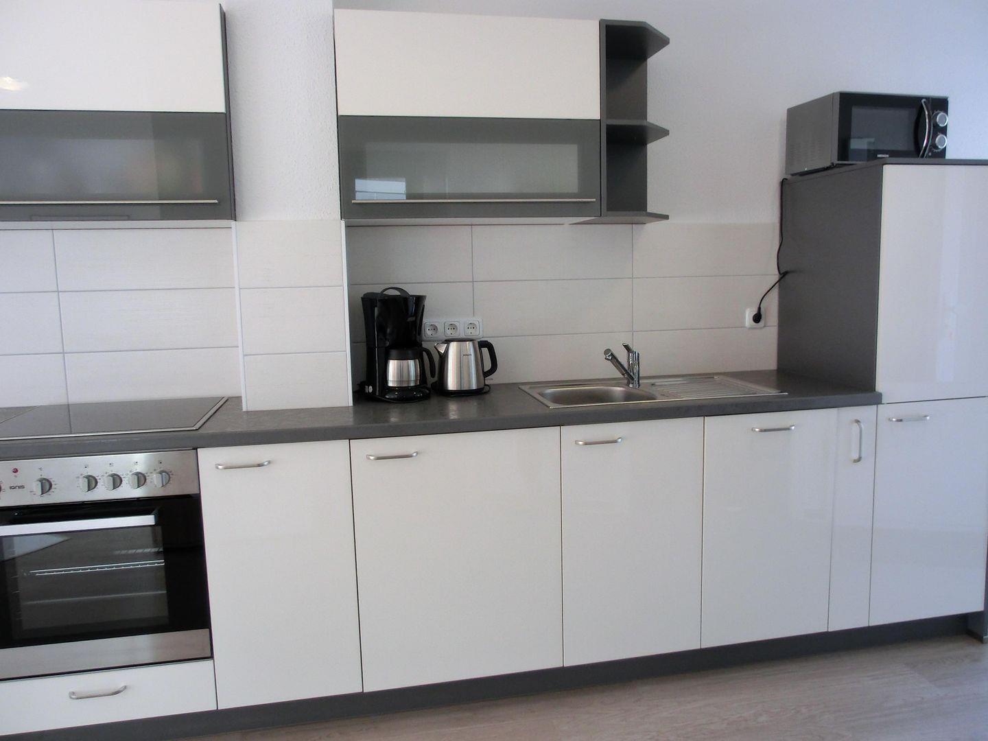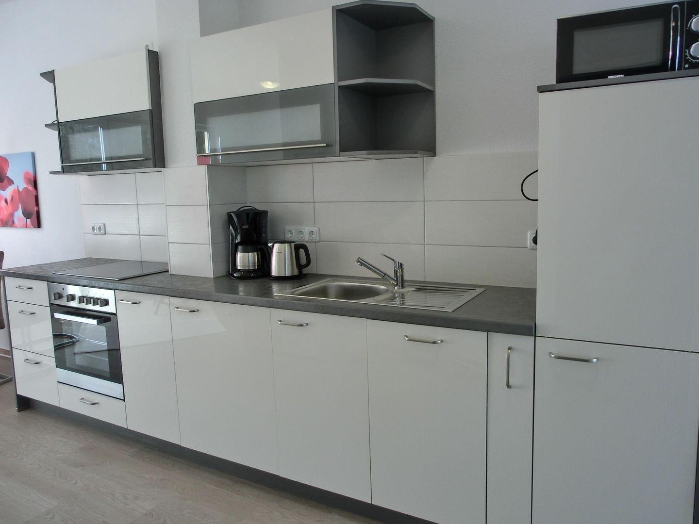 • Offene Küche mit Geschirrspülmaschine, Herd & Backofen, Kühlschrank mit Gefrierfach, Mikrowelle, Kaffeemaschine,